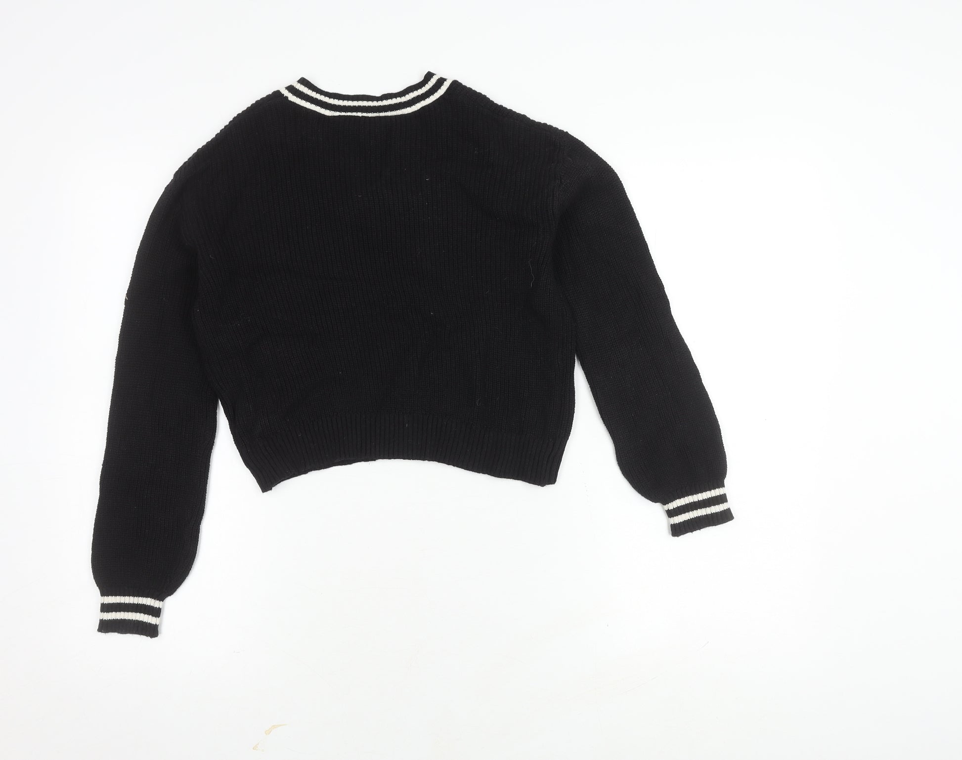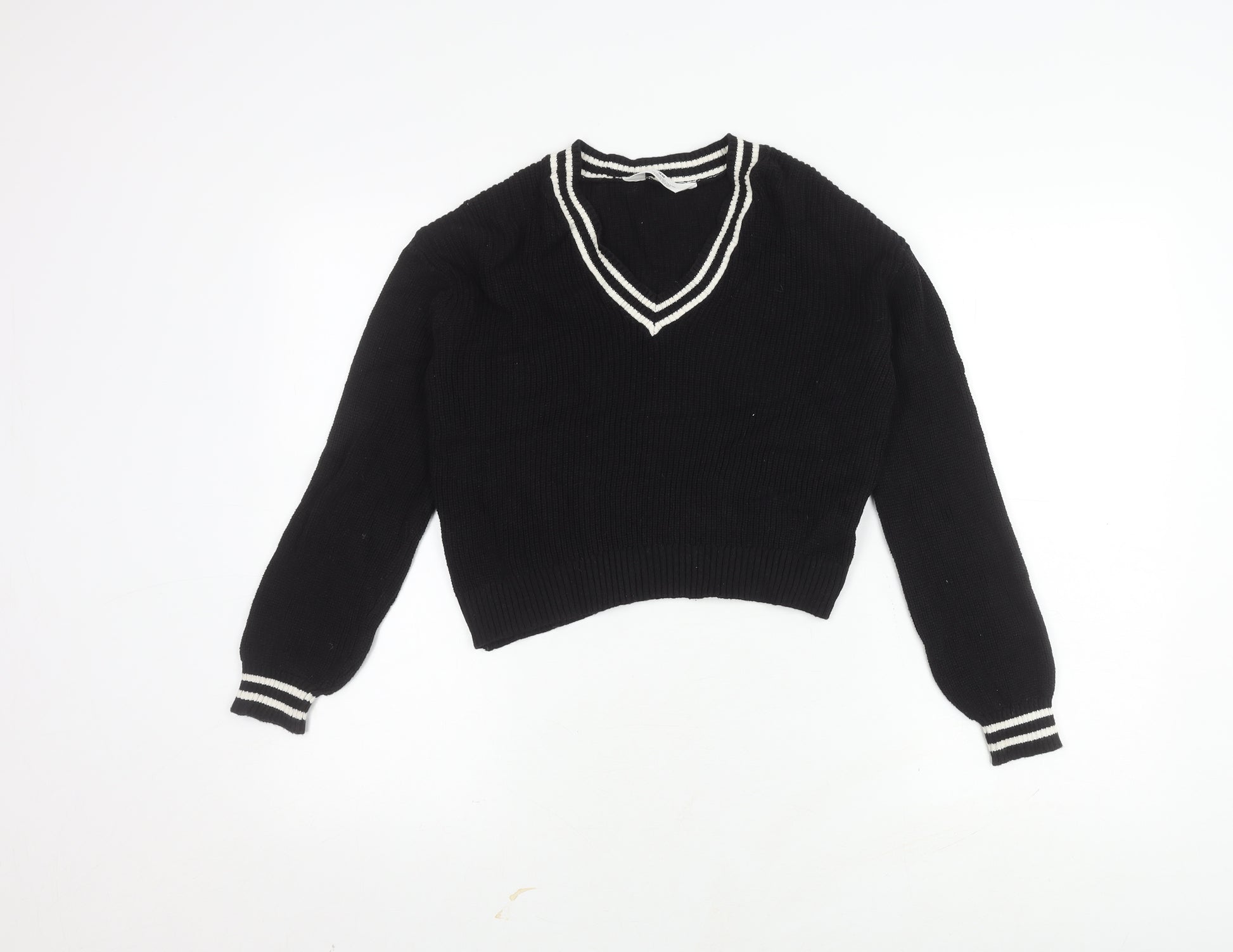 Black V-Neck Women's Cotton Pullover Jumper Size 10
