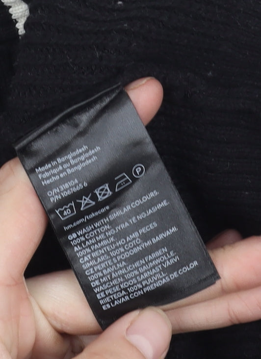 This chic H&M pullover jumper in classic black offers a stylish and versatile addition to any wardrobe. Crafted from 100% cotton, this knit garment ensures comfort and breathability, making it ideal for all-season wear. The piece features a flattering V-neckline and long sleeves, offering an elegant yet casual style suitable for various occasions. Pair it with jeans for a laid-back look or dress it up with accessories for a more polished appearance. The jumper's simple elegance and comfortable fit make it a timeless piece, perfect for everyday wear or special outings. In excellent condition with slight lint visible, this is a great find for fashion-conscious shoppers seeking quality and value. Machine washable for convenience, this jumper is as practical as it is stylish.