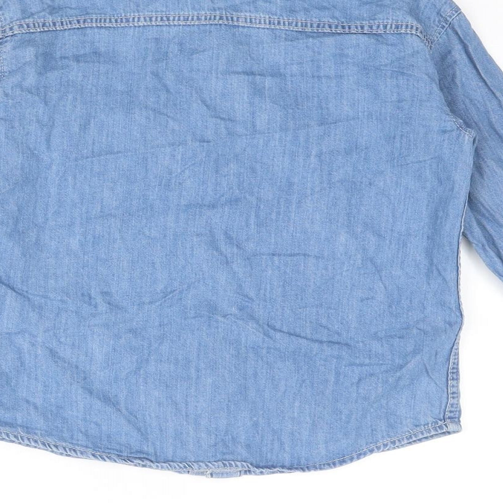Boys Blue Cotton Basic Button-Up Size 6-7 Years Collared Snap