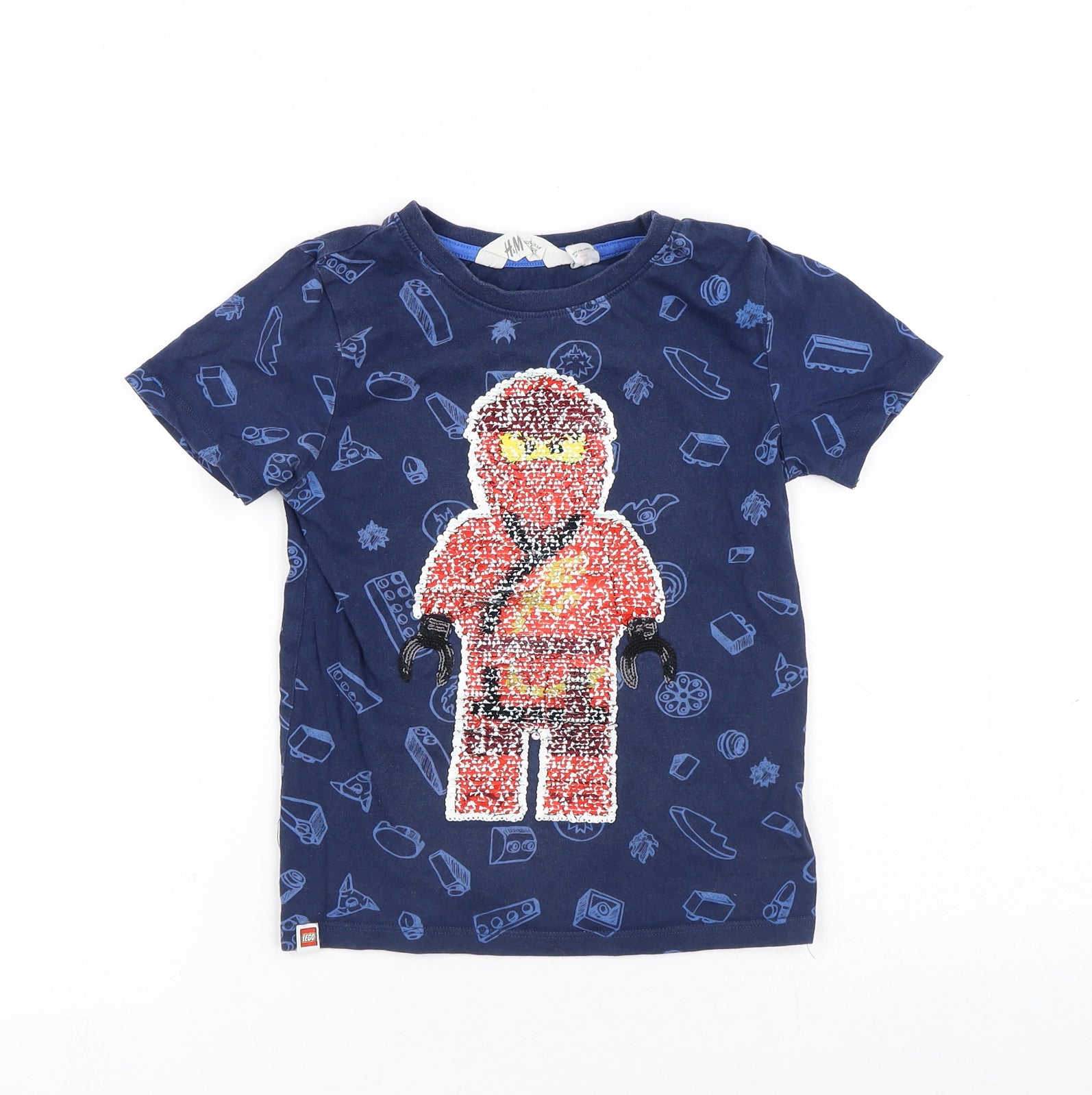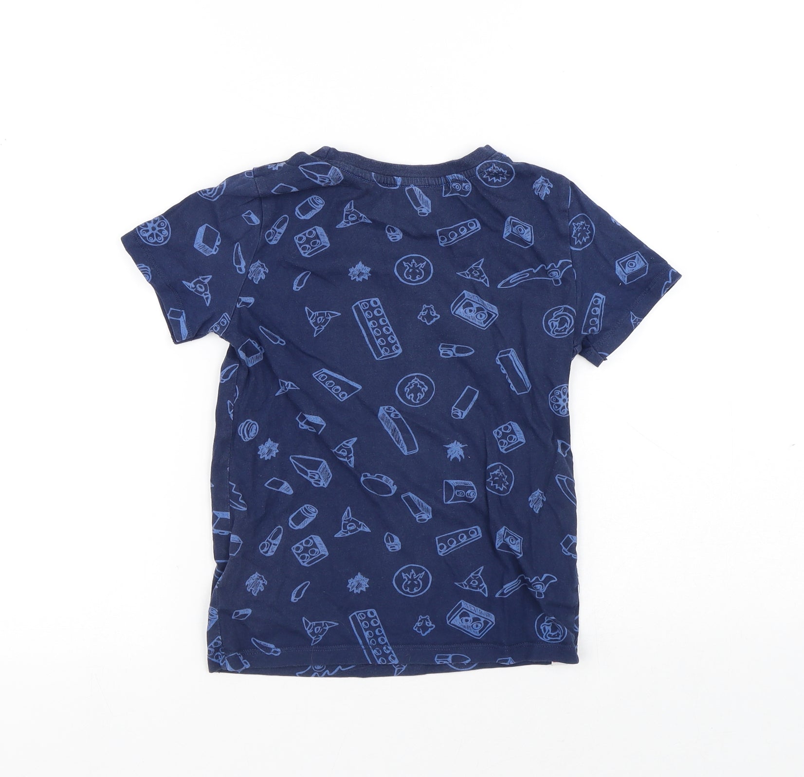 Boys Blue Geometric Cotton Basic T-Shirt Size 6-7 Years Round Neck - Lego Ninjago