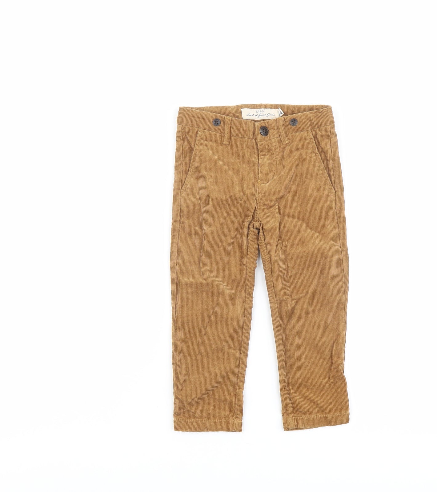Boys Brown Cotton Carrot Trousers Size 2 Years Regular Button