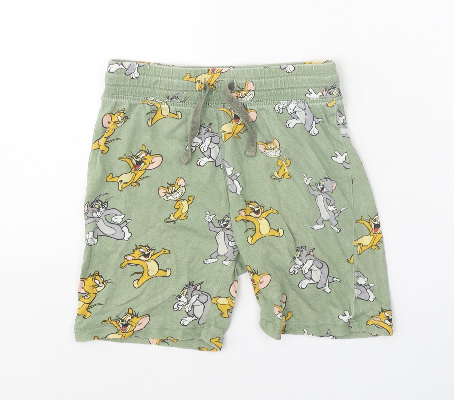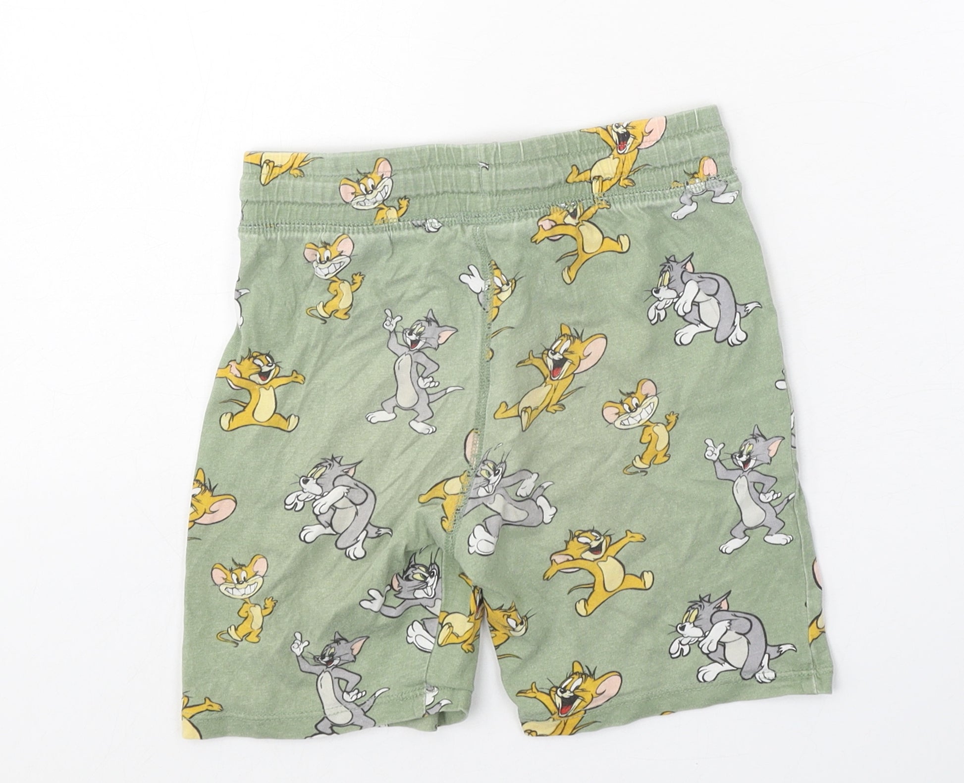 Boys Green Geometric 100% Cotton Sweat Shorts Size 5-6 Years Regular Drawstring - Tom & Jerry