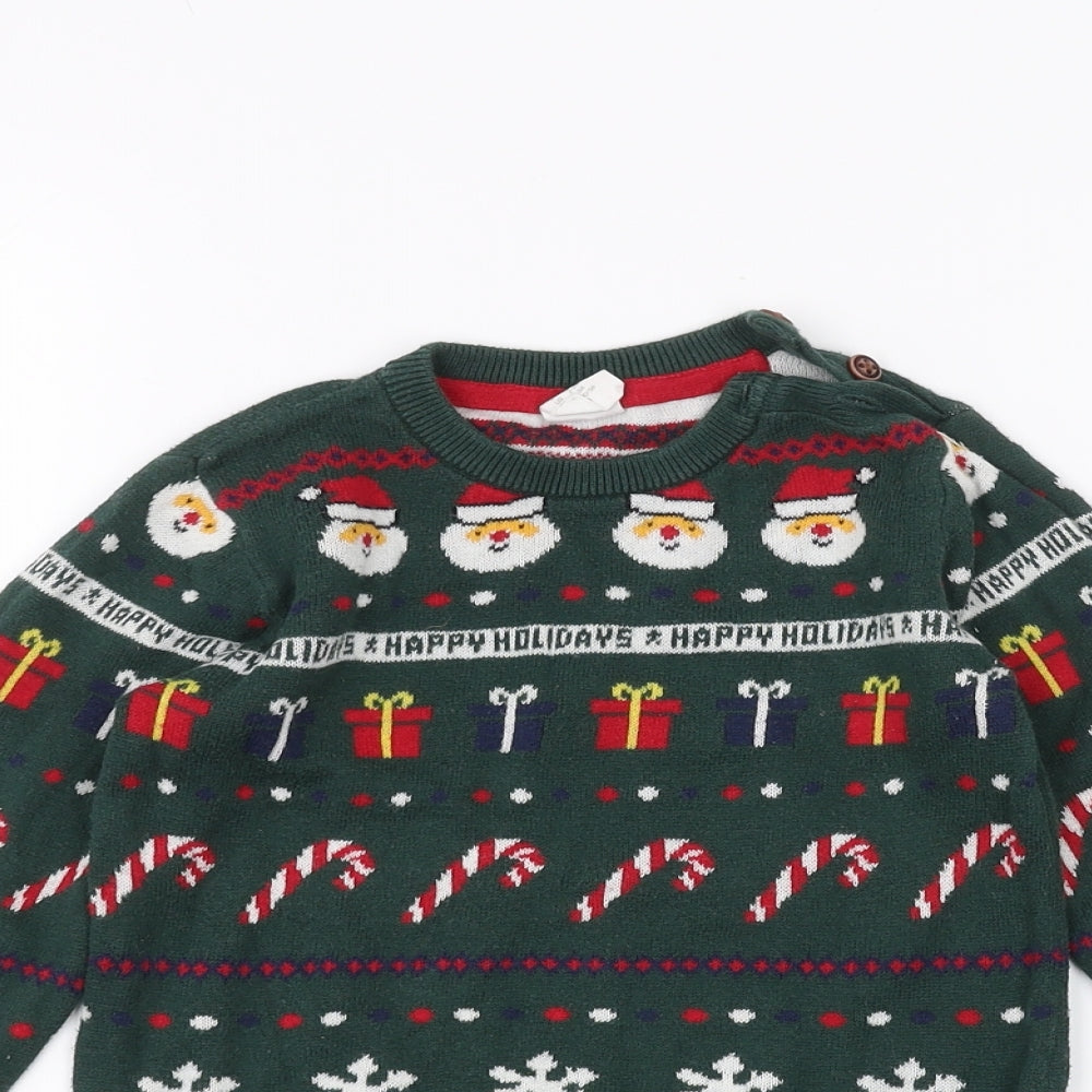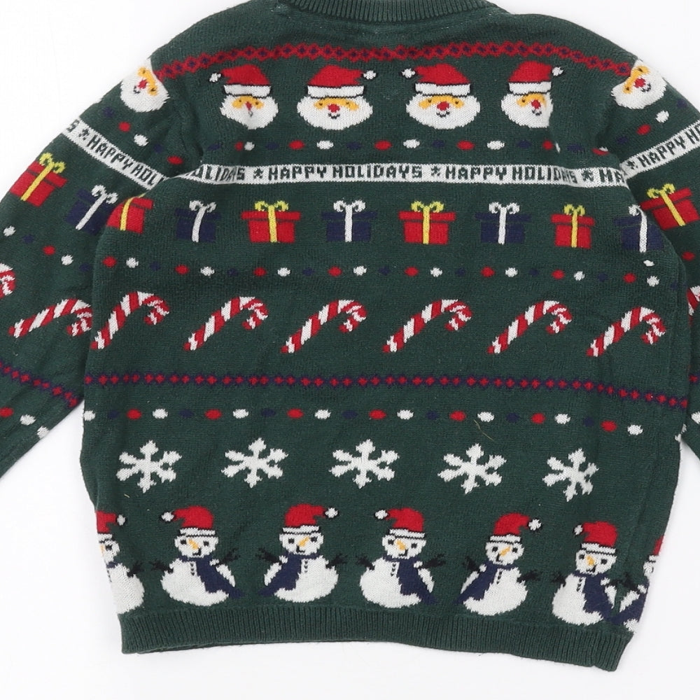 Boys Green Pullover Jumper Size 2-3 Years - Christmas