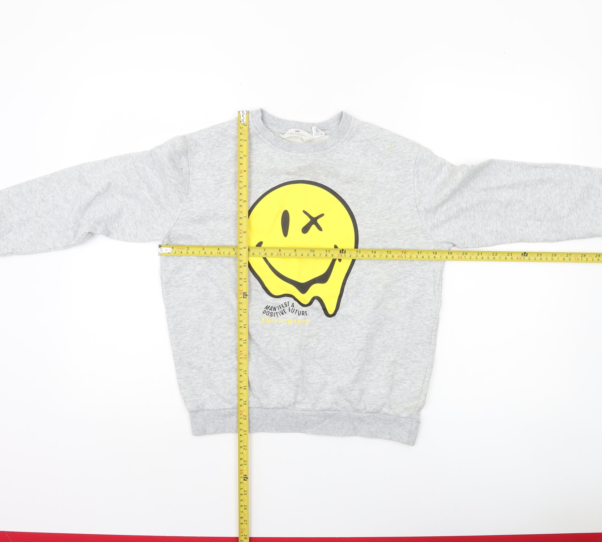 Brighten your child’s wardrobe with this fun and comfortable H&M boys’ grey sweatshirt featuring a bold yellow Smiley Face graphic. Made from a soft fleece blend of 80% cotton and 20% polyester, plus 3% elastane for added stretch, it’s perfect for all-day comfort whether at school, during playtime or just relaxing at home. The sweatshirt offers a regular fit with a classic crew neckline and long sleeves, making it ideal for layering in cooler months such as autumn and winter, but versatile enough for spring wear too. The playful Smiley Face print on the front adds a cheerful pop of colour, while the soft fleece interior keeps warmth close to the skin without feeling heavy. The durable ribbed cuffs and hem ensure a snug fit, maintaining shape after repeated washes. Breathable and easy to care for, it’s fully machine washable for convenience. This pullover sweatshirt is ideal for casual days out, school runs, or lounging indoors. The distinctive graphic print embodies a light-hearted, fun theme that kids will love. Its relaxed, regular fit makes it practical for active boys who appreciate comfort and personality in their clothing. With its excellent pre-owned condition and quality H&M craftsmanship, this boys’ sweatshirt offers great value and everyday wearability. Whether paired with jeans, joggers or shorts, it brings a cool and playful style that suits any casual occasion. For parents looking for reliable, stylish and agreeable kids’ fashion, this H&M grey Smiley Face pullover is an easy, smile-inducing choice that blends comfort, durability and fun in equal measure.