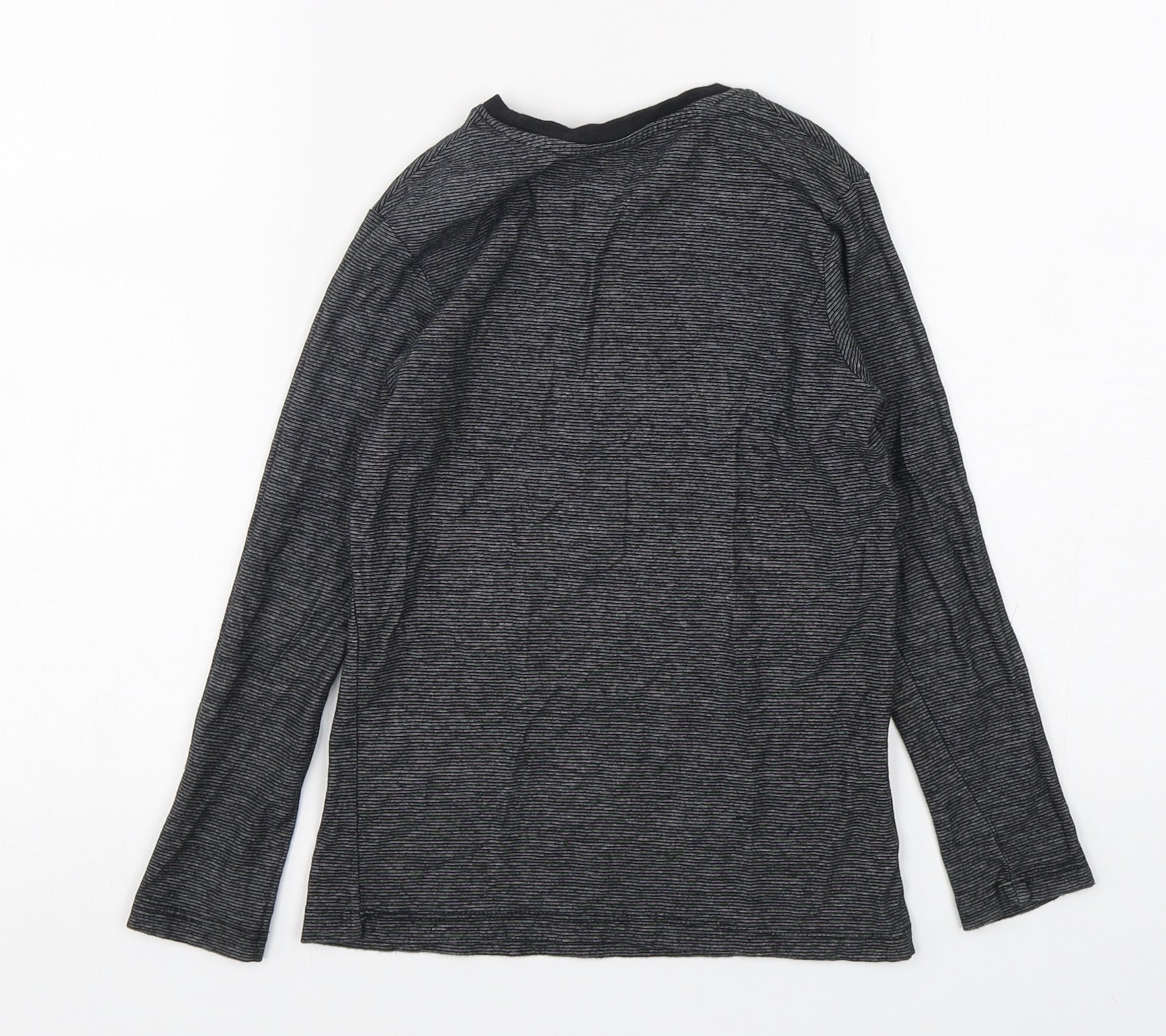 Boys Grey Striped Cotton Basic T-Shirt Size 7-8 Years Round Neck Pullover