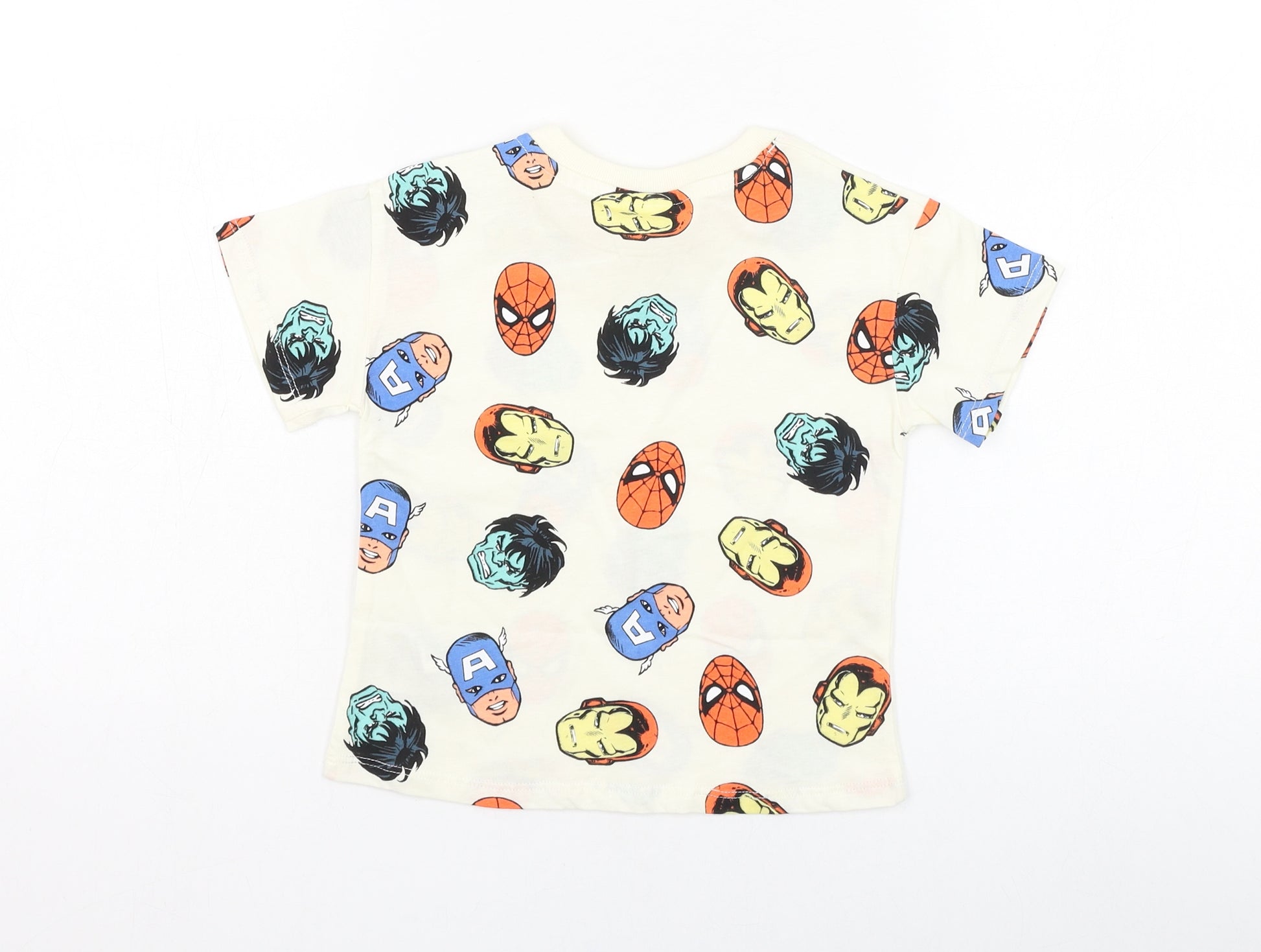Boys Ivory Cotton Basic T-Shirt Size 12-18 Months Round Neck Pullover - Marvel