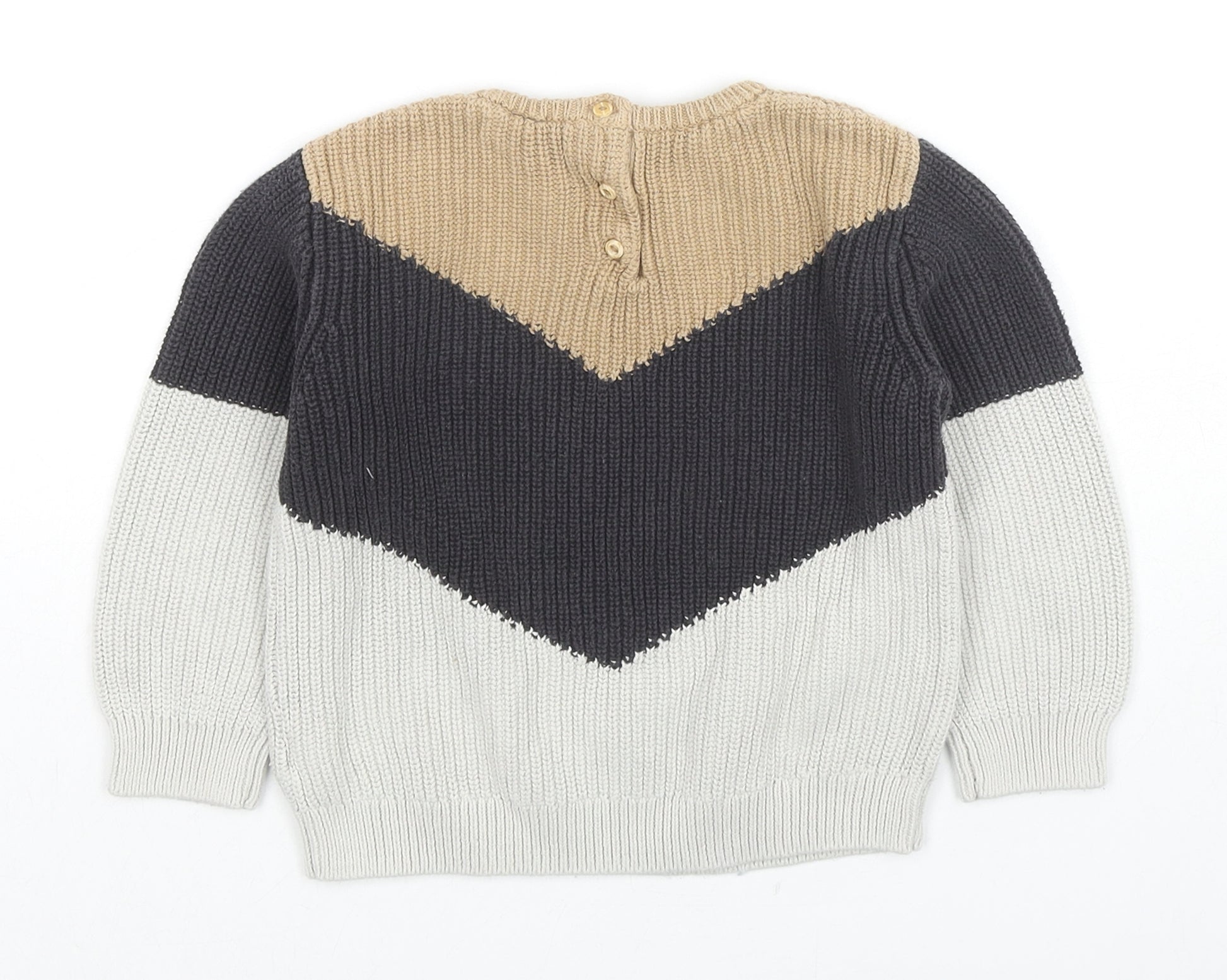 Boys Multicoloured Round Neck Colourblock Cotton Pullover Jumper Size 2-3 Years Button