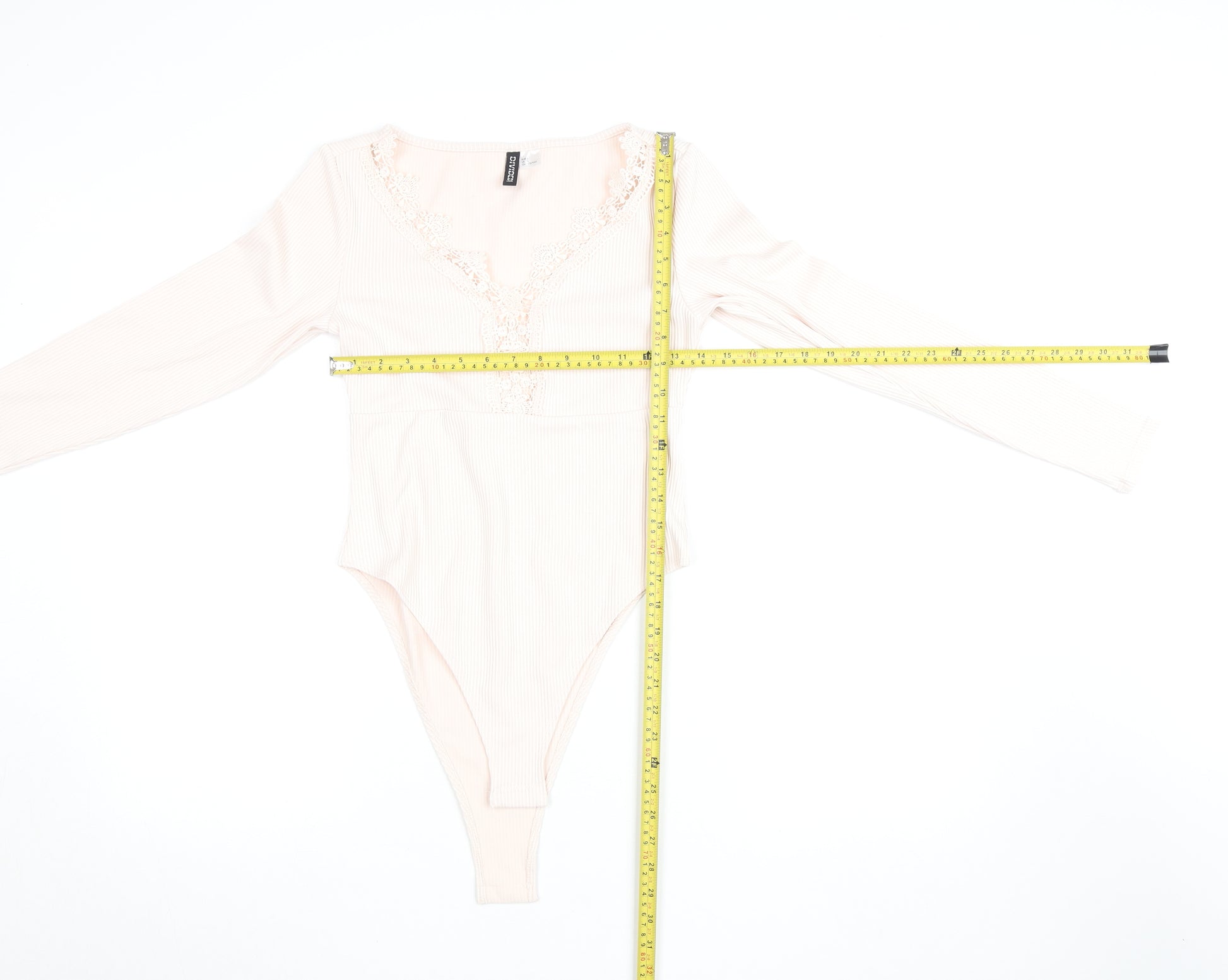 Divided Women Beige Lace Long Sleeve Bodysuit Size L