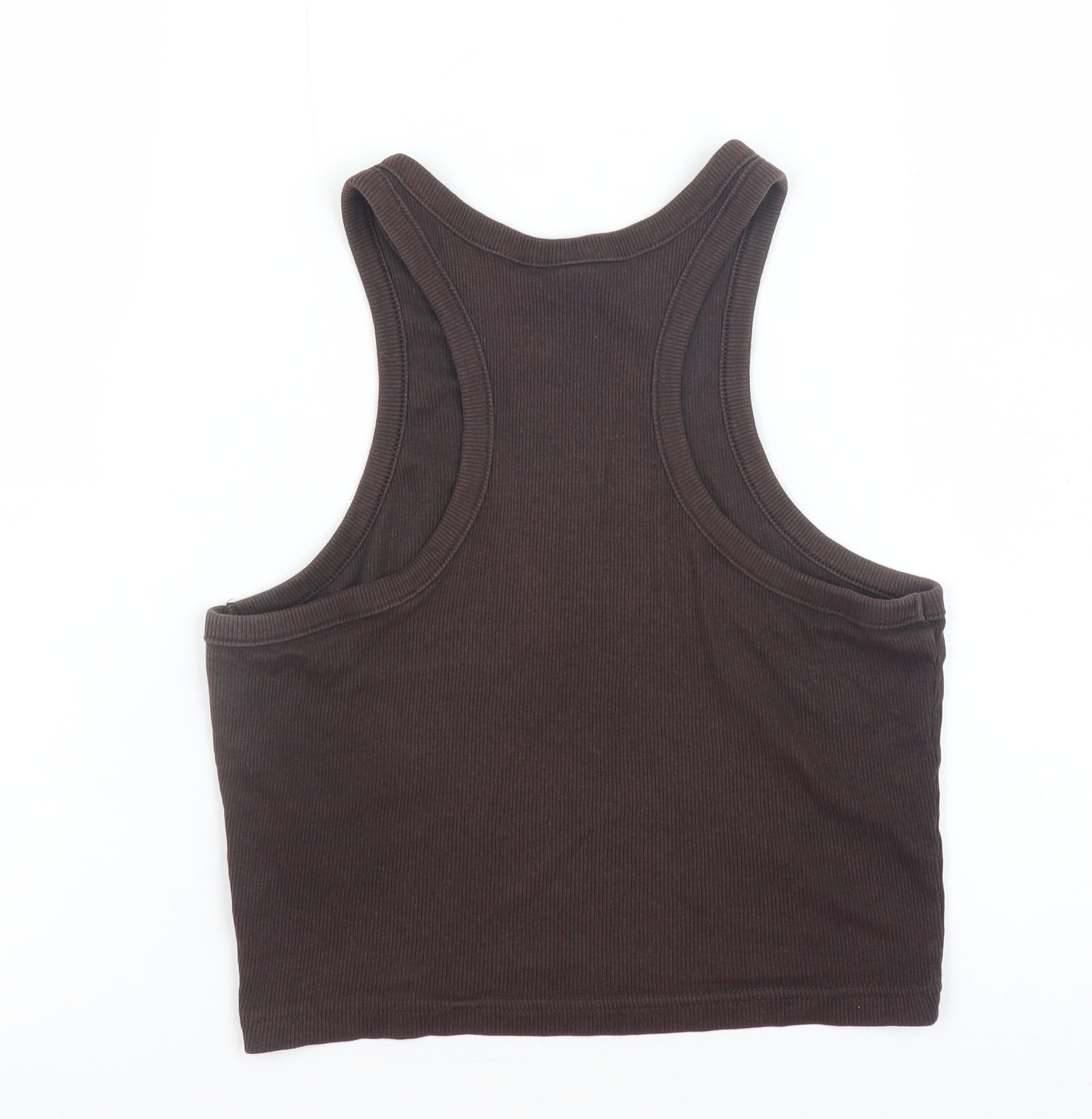 Divided Women Brown Cropped Racerback Tank Top Size S