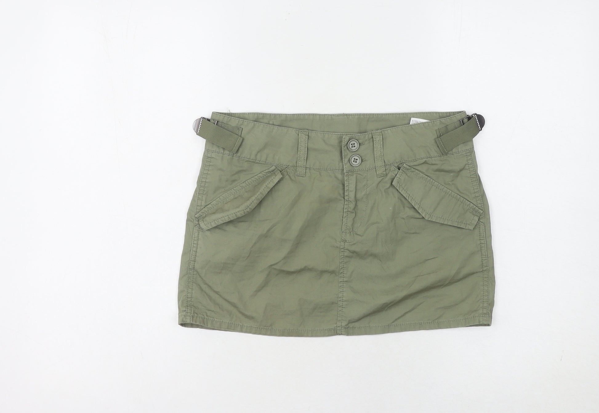 Step into chic casual style with this H&M Divided women's cargo skirt. Crafted from high-quality cotton, this short green skirt is designed for comfort and fashion. Featuring a classic button closure and practical pockets, it's perfect for everyday wear. The minimalist design makes it easy to pair with a variety of tops, while the vibrant green hue adds a pop of colour to your wardrobe. Ideal for spring and summer outings, this skirt offers a comfortable mid-rise fit and is machine washable for easy care. Despite being gently used, it remains in excellent condition, promising durability and style. Perfect for casual occasions, this piece is a must-have for any fashion-forward wardrobe.