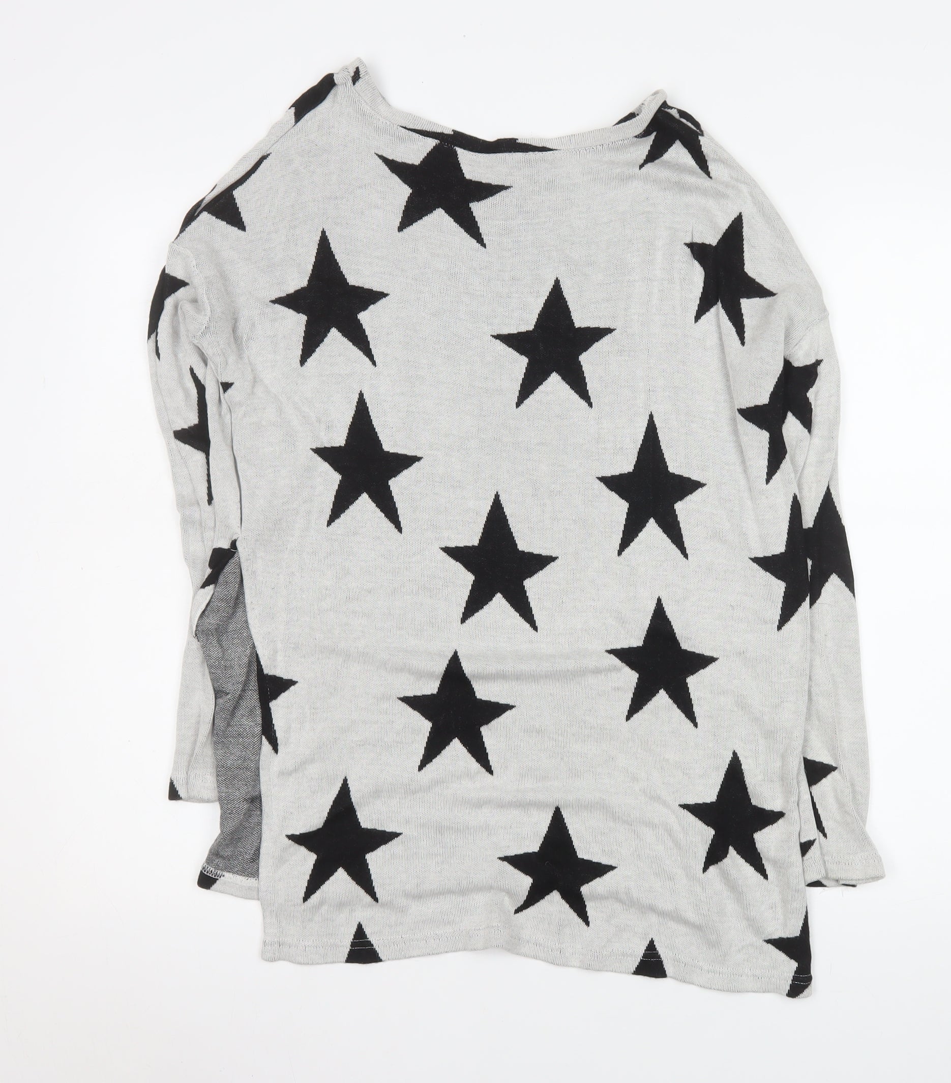 Divided Womens Grey Star Print Lightweight Long Sleeve Top XS