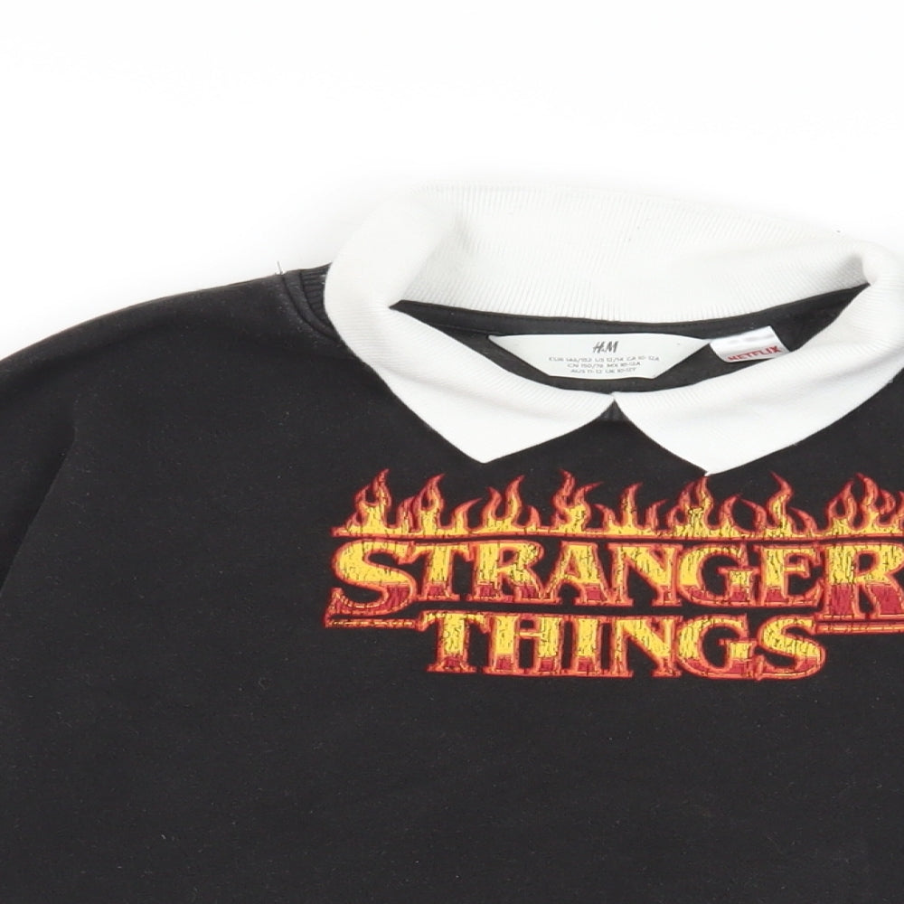 Girls Black Cotton Pullover Sweatshirt Size 10-11 Years Pullover - Stranger Things