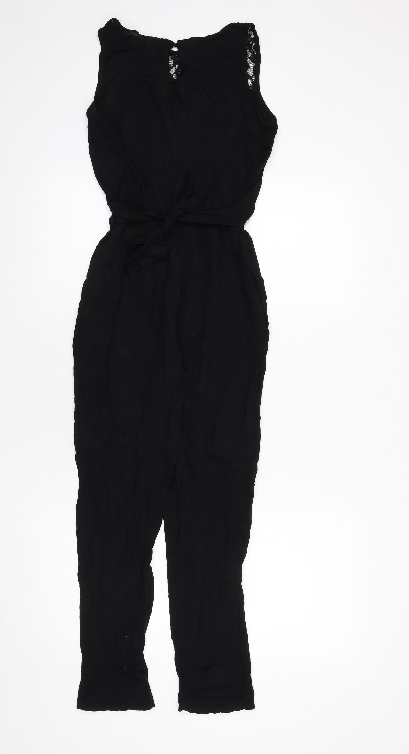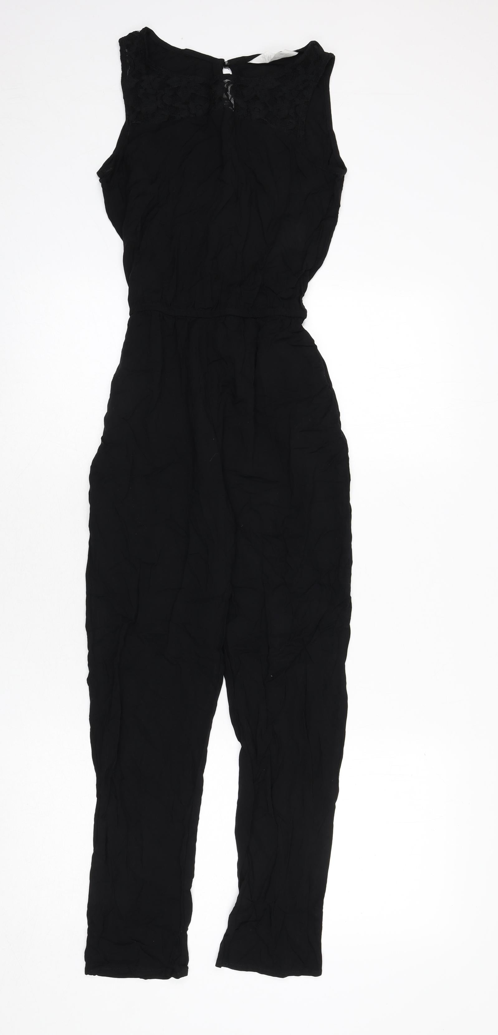 Girls Black Viscose Jumpsuit One-Piece Size 11-12 Years L23 in Button - Lace Trim, Tie Detail