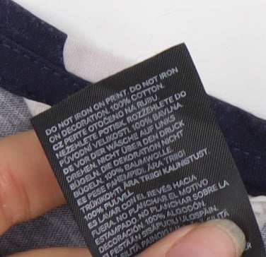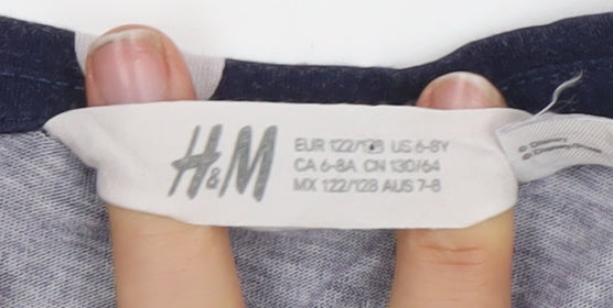 Add a touch of playful charm to your little one's wardrobe with this adorable H&M Girls Blue Polka Dot Minnie Mouse Sequin T-Shirt. Designed for girls aged 7-8 years, this delightful short sleeve top features a cheerful navy blue backdrop adorned with a classic white polka dot pattern. The standout detail is the shimmering red sequin bow embellishment on Minnie Mouse’s print, bringing an extra sparkle that children will adore. Crafted from 100% cotton in a soft, breathable jersey fabric, it ensures lasting comfort throughout everyday wear. Perfect for casual outings, playdates, school days or holidays, the lightweight material and regular fit offer a comfortable yet stylish option suitable for spring, summer and autumn seasons. The playful cartoon theme, combined with the easy pullover style and crew neckline, makes dressing fuss-free and fun. This versatile top is machine washable, easy to care for, and designed to stay soft and colour-rich even with regular use. In excellent pre-owned condition, it shows minimal signs of gentle wear with no stains, marks, or damage—ready to bring more smiles and sparkles to any young Disney fan’s collection. Whether paired with jeans, shorts, or a cute skirt, this Minnie Mouse T-shirt adds a joyful character-inspired twist to any outfit. A must-have piece for girls who love fun fashion and Disney magic, it’s practical, durable, and simply adorable—a favourite for both everyday wear and casual adventures alike.