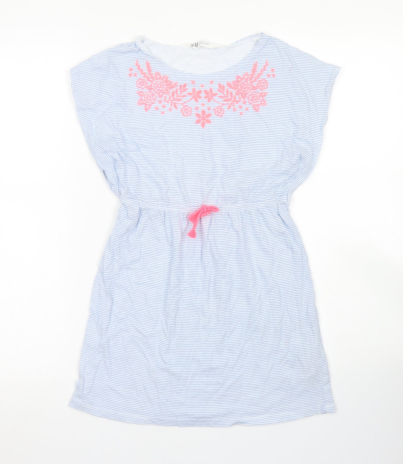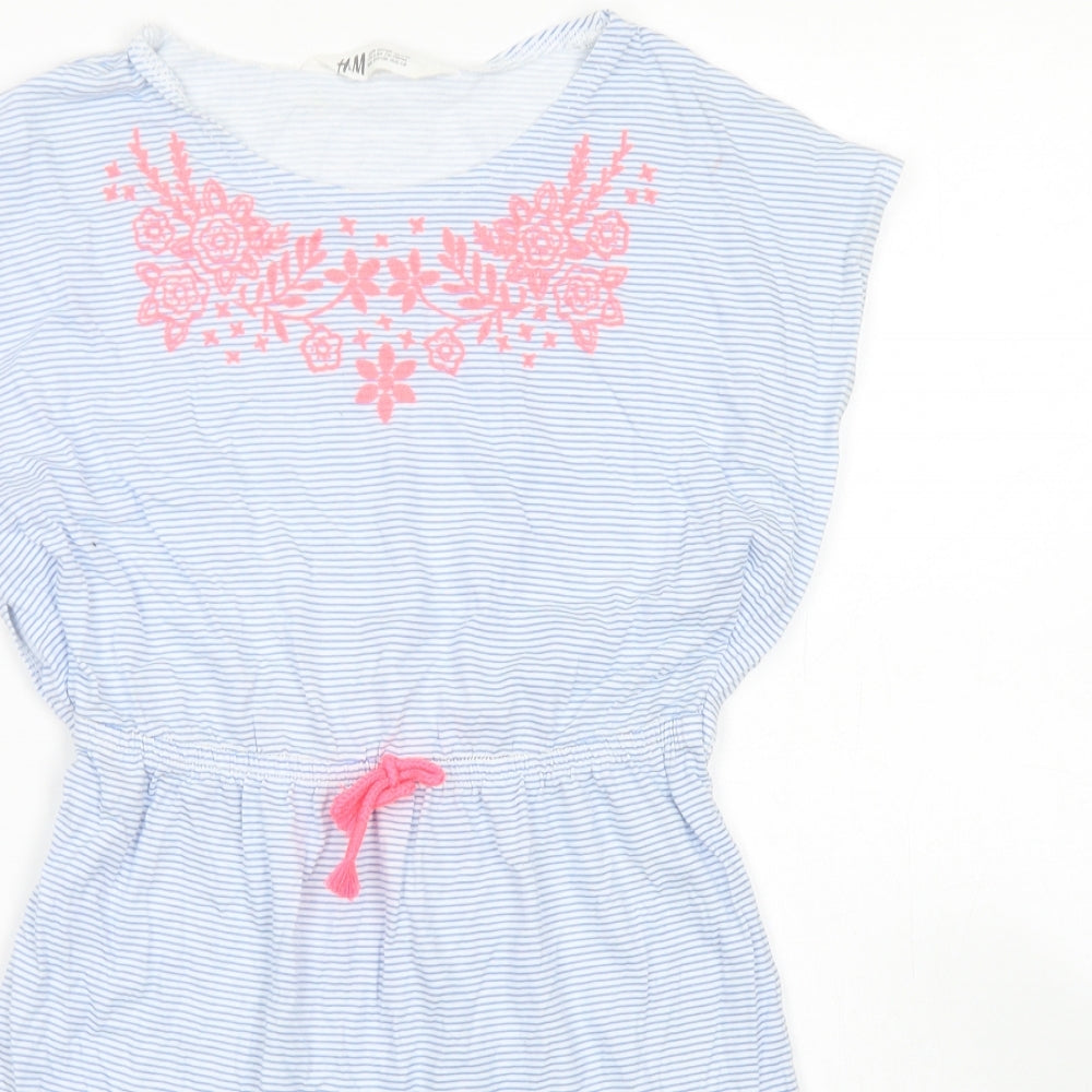 Girls Blue Striped Cotton Kaftan Size 7-8 Years Round Neck
