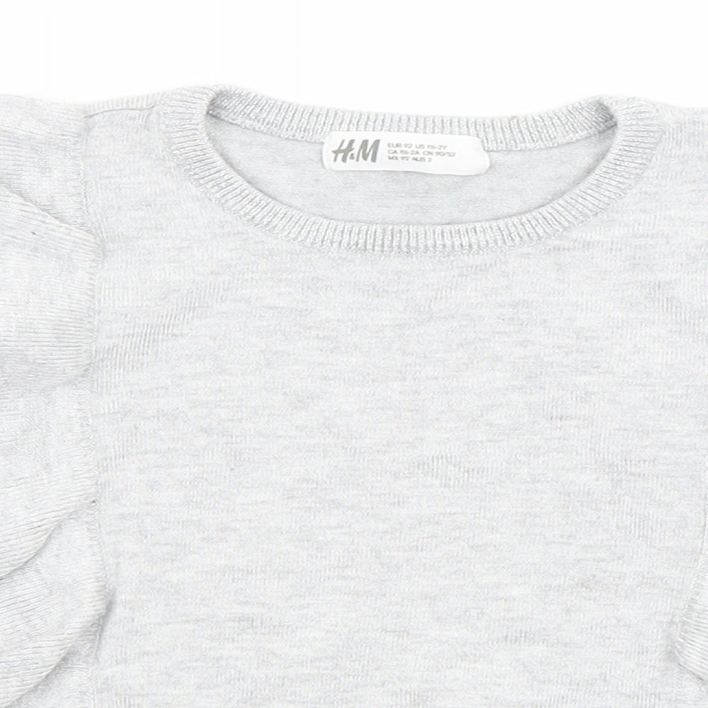 Girls Grey Round Neck Vinyl Pullover Jumper Size 2 Years Pullover - Ruffle details