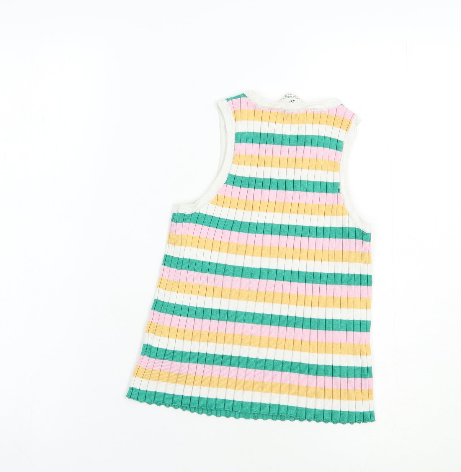 Girls Multicoloured Striped Viscose Pullover Tank Size 10-11 Years Crew Neck Pullover