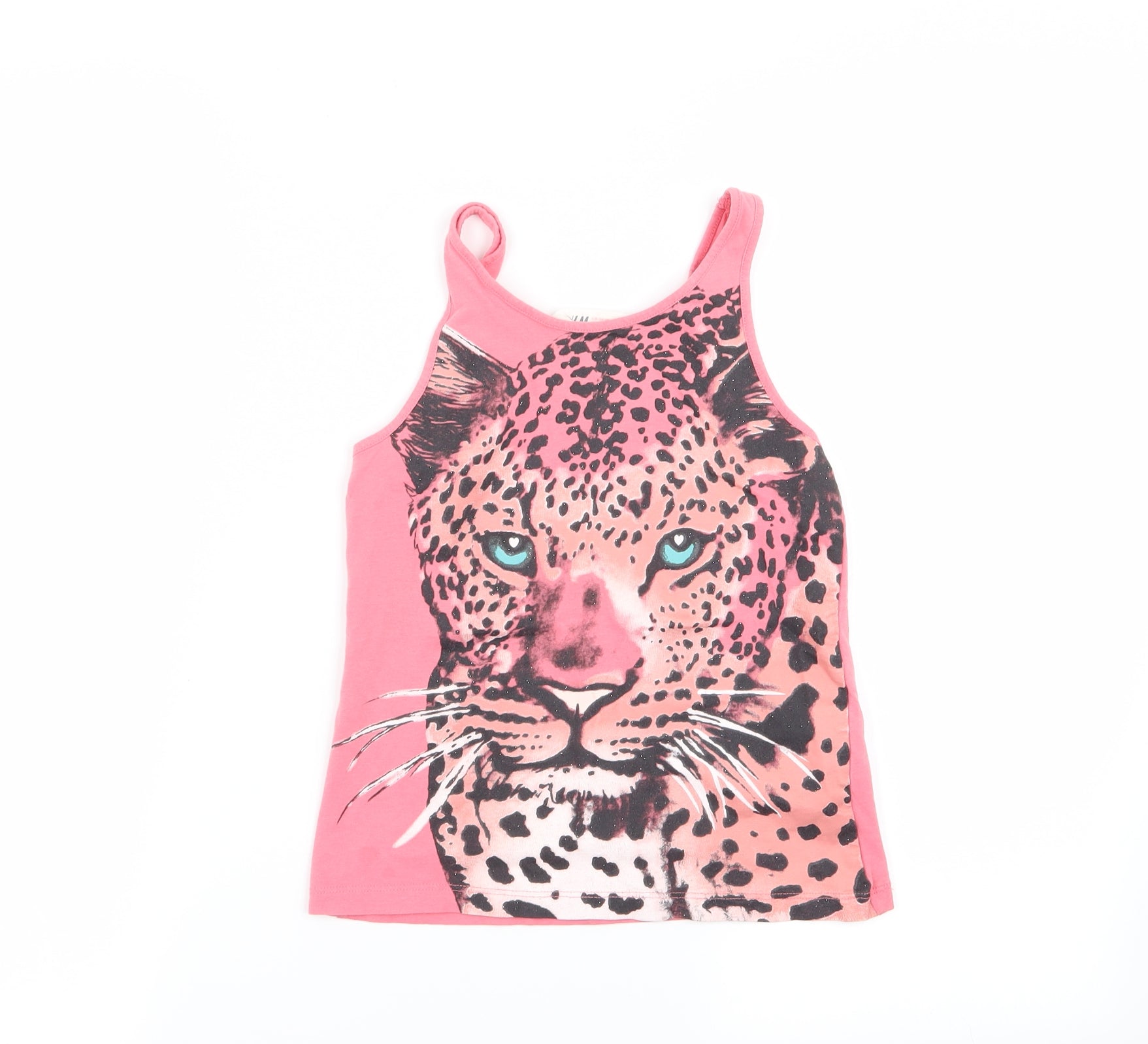 Girls Pink Animal Print Basic Tank Size 9-10 Years