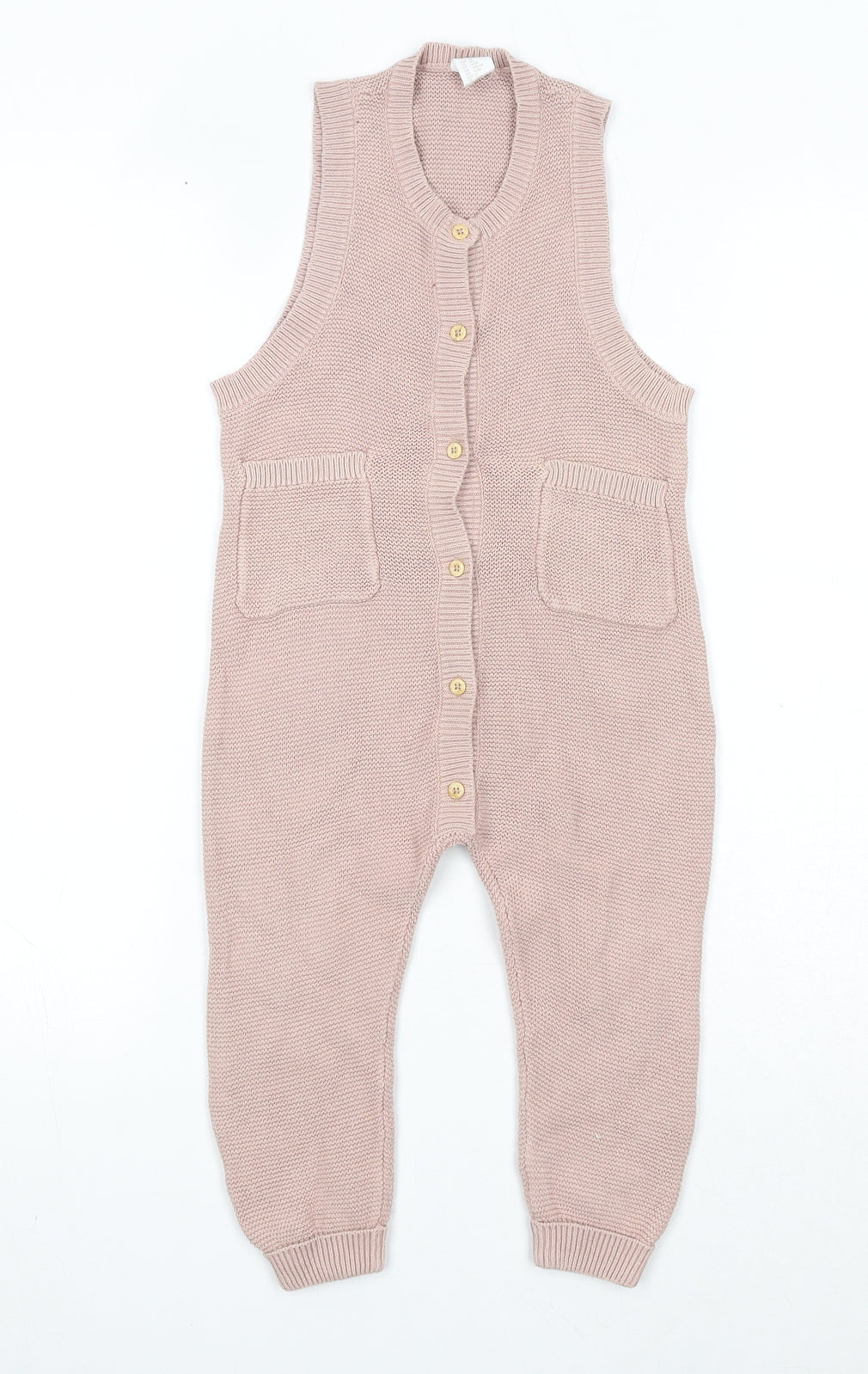 Girls Pink Cotton Jumpsuit One-Piece Size 3 Years Button