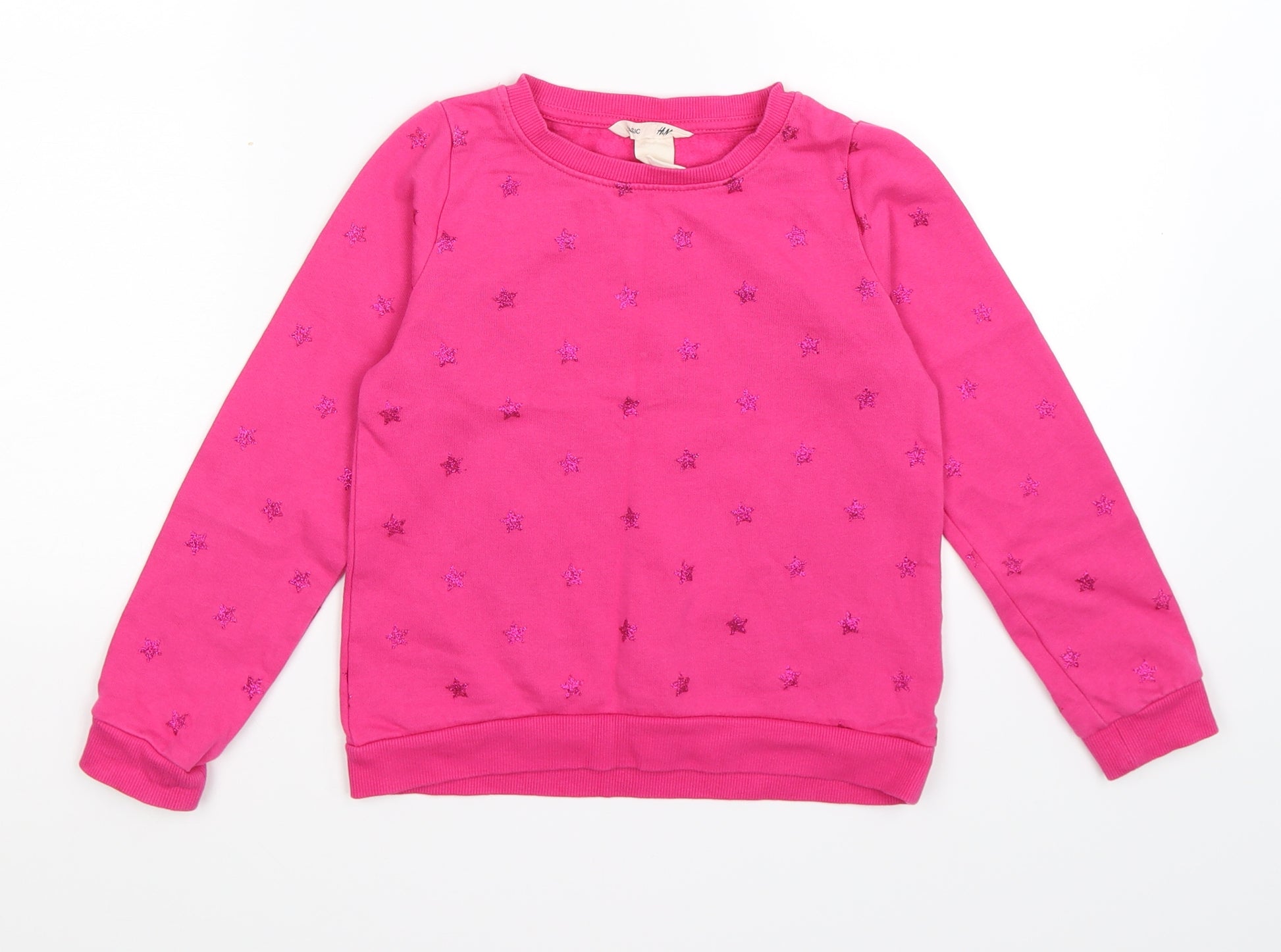 Girls Pink Polka Dot Pullover Jumper Size 6-7 Years - stars