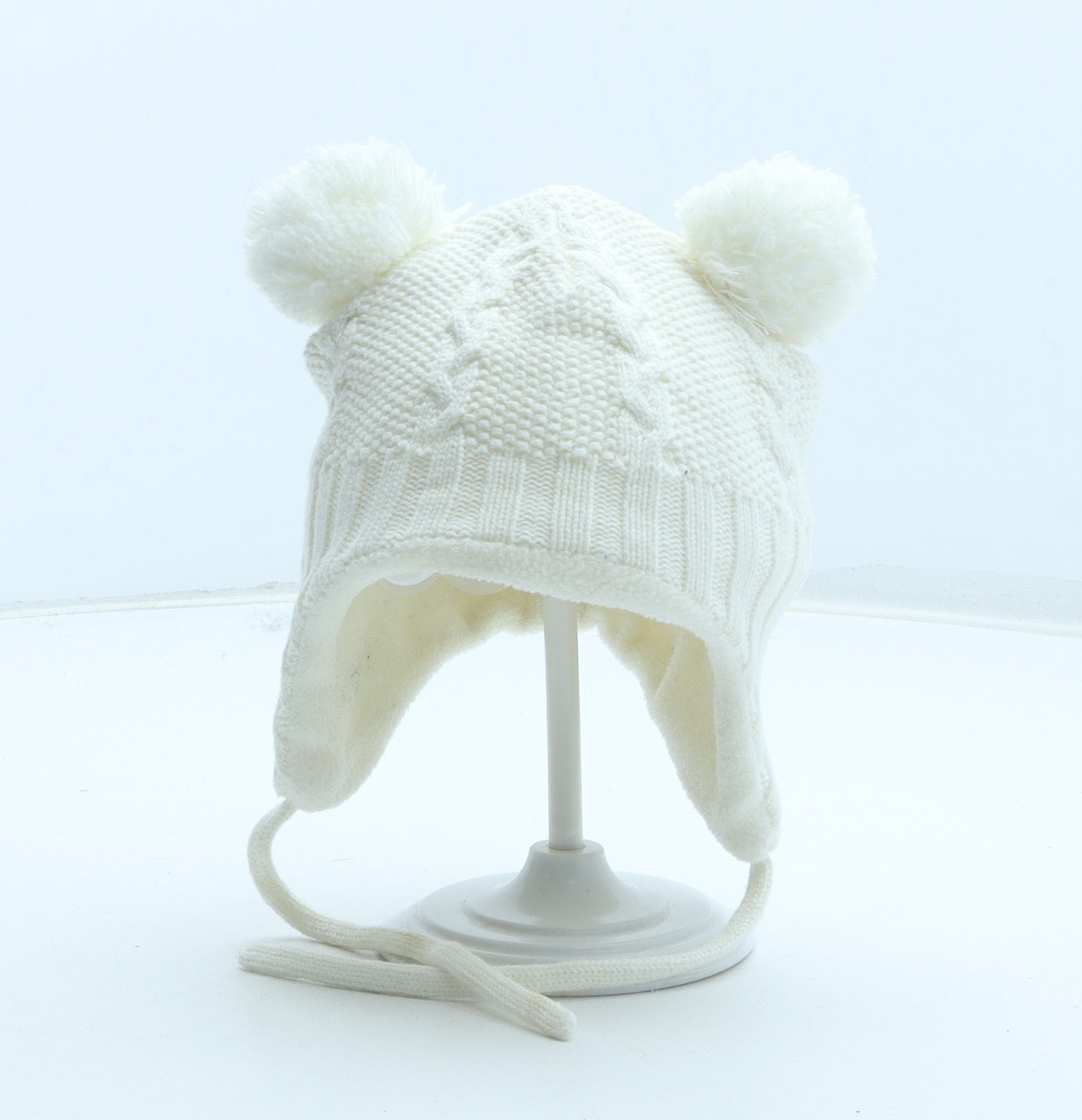 Marks and Spencer Girls White Geometric Acrylic Bobble Hat Size S - Peppa Pig Size 3-6 Years