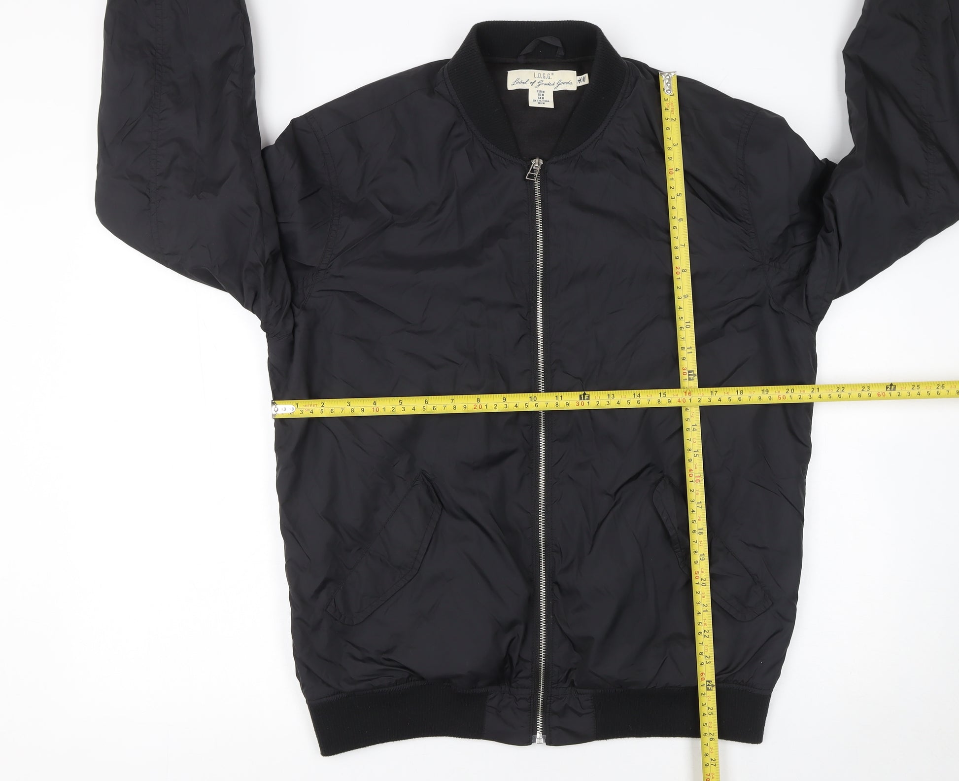 Enhance your daily wardrobe with this stylish H&M L.O.G.G. women's black bomber jacket. Designed for a modern and versatile look, this jacket blends a timeless silhouette with practical wearability. The smooth black polyamide shell is durable yet lightweight, making it perfect for layering across seasons. Its short bomber cut delivers a flattering shape that pairs effortlessly with jeans, skirts, or dresses. The full-zip fastening provides easy wear and temperature control, while two front pockets add both functionality and casual appeal.Lined with a blend of polyester and cotton, this jacket offers a soft inner feel for lasting comfort. The ribbed cuffs and hem contribute to a snug, fitted finish that keeps warmth in while maintaining a sleek profile. The simple zip accent and classic bomber design make this piece an easy choice whether you’re going for an urban streetwear vibe or a polished casual look.Ideal for autumn and spring, this jacket is lightweight yet lined to add just the right amount of insulation. Its versatile black colour ensures it complements every outfit with ease, while the subtle detailing and quality finish embody H&M’s attention to accessible fashion and dependable everyday wear.In excellent pre-owned condition with no visible flaws or damage, this H&M L.O.G.G. bomber jacket is ready to become a favourite go-to piece in your outerwear collection. Whether you’re heading to work, meeting friends, or simply on the go, this jacket merges comfort, practicality, and effortless style. A modern classic that’s both timeless and functional.