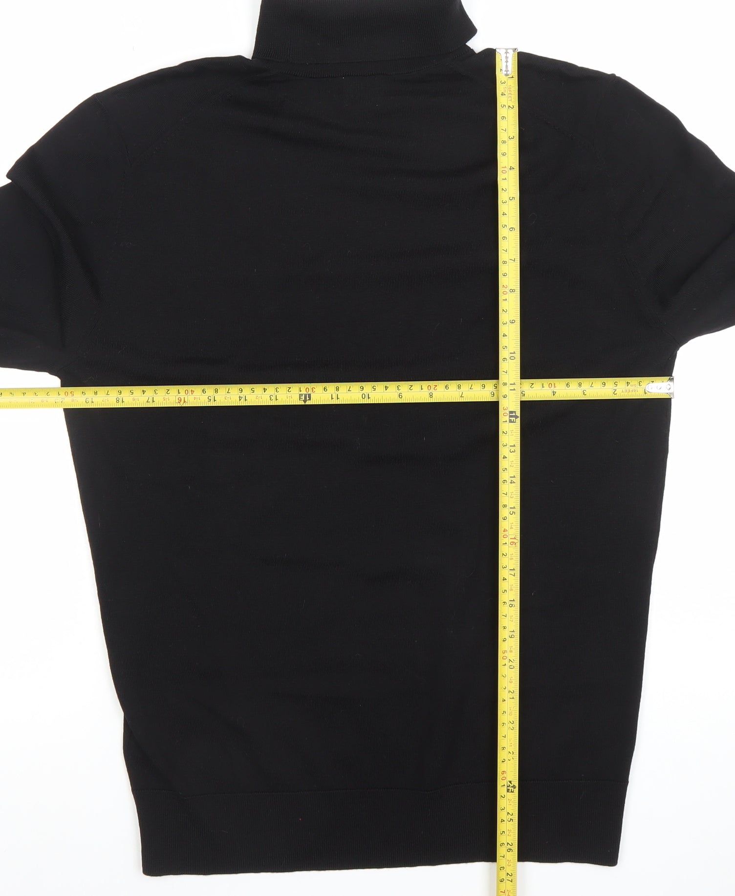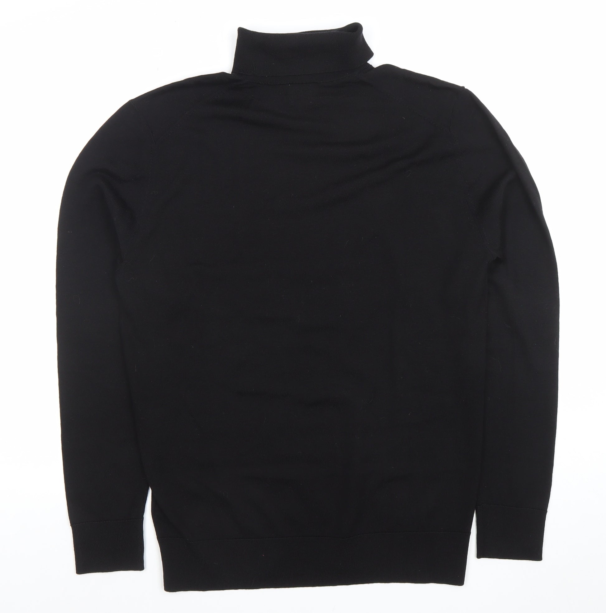 Men Black Wool Roll Neck Jumper M Slim Fit Knit Pullover