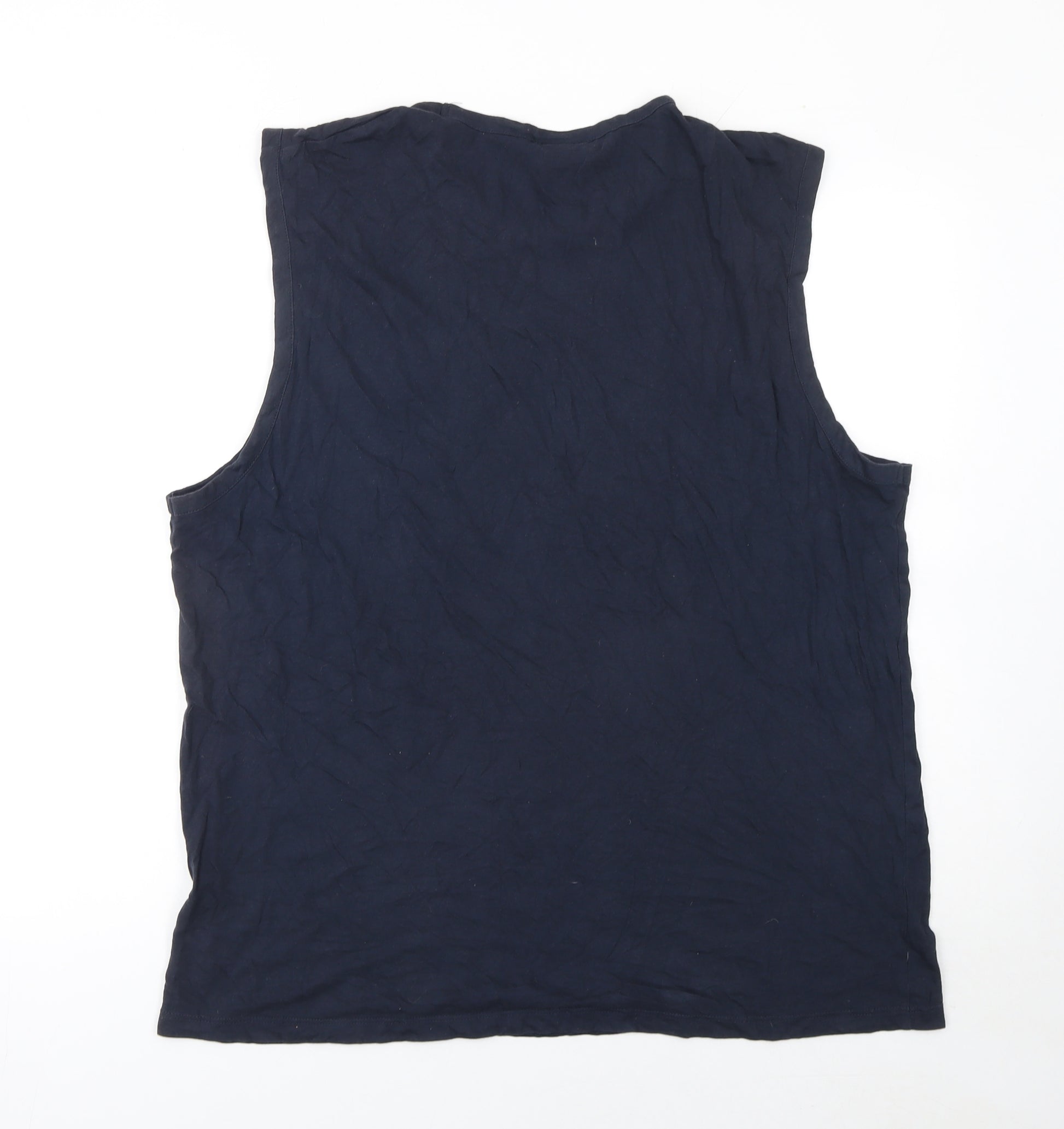 Men Blue Sleeveless Graphic T-Shirt L Regular Fit