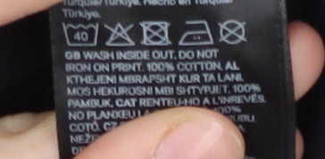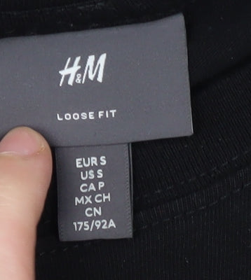 Dive into a casual classic with this H&M Men's Black T-Shirt, featuring an eye-catching fish graphic that's perfect for aquatic enthusiasts and casual wearers alike. Crafted from 100% cotton for a soft, comfortable feel, this loose fit T-shirt allows you to express your unique style effortlessly. Its black colour provides a versatile base that complements any outfit, making it suitable for a variety of occasions, from casual day outings to laid-back weekend gatherings. The short sleeves and crew neck design offer timeless appeal, while the regular fit ensures it sits just right for a relaxed yet flattering silhouette. Whether you're a fan of marine life or simply in search of a unique graphic tee, this piece caters to all with its intriguing design and high-quality material. Easy to care for, it's machine washable, making it a practical addition to your everyday wardrobe. Perfect for pairing with jeans or shorts, this T-shirt is designed to keep you comfortable and stylish throughout all seasons. Despite some light wear, it remains in excellent condition, promising lasting durability for many wears to come. Elevate your casual look with this distinctive H&M T-shirt and enjoy its blend of comfort, style, and affordability.