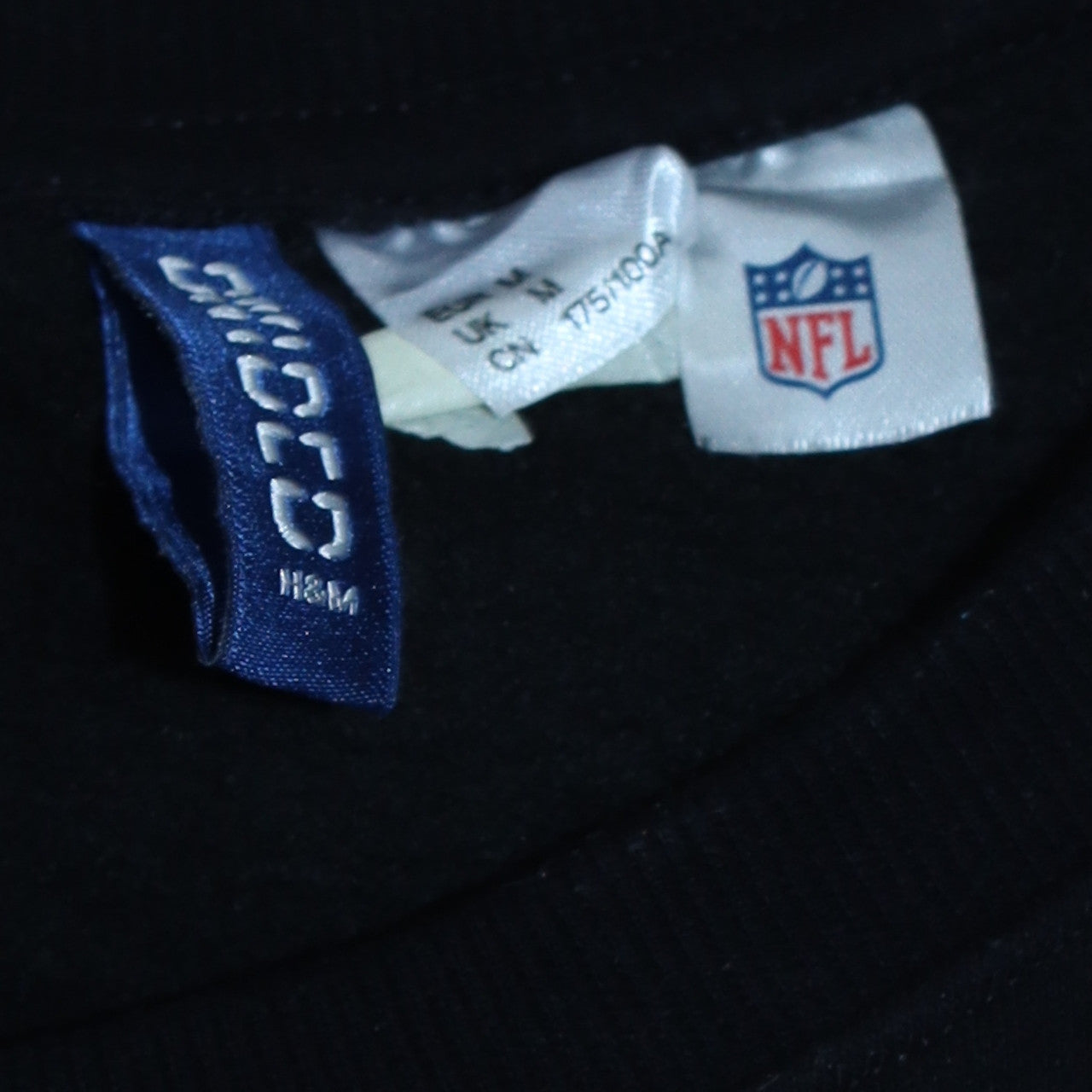 Showcase your team pride and casual style with this H&M men’s black Raiders crew neck sweatshirt. Made from a comfortable cotton and polyester blend, this pullover offers a soft, breathable fit that’s perfect for cooler days or laid-back weekends. The bold Raiders logo on the front and back makes a strong statement for any sports fan, especially those who appreciate American football culture. Designed in a regular fit with a classic crew neckline and long sleeves, this sweatshirt provides a versatile addition to your wardrobe whether you’re pairing it with jeans, joggers, or shorts. Featuring lightweight sweatshirt fabric suitable for all seasons, it’s ideal for layering under jackets in winter or wearing on its own in spring and autumn. The durable construction and ribbed cuffs ensure lasting shape and comfort through wear. The black backdrop with contrasting white print offers a striking, timeless look that flatters all styles. Perfect for fans wanting sporty yet easy-to-wear attire, this H&M Raiders sweatshirt balances comfort with character. Machine washable for easy care, it’s convenient for everyday wear. With its American football theme and authentic NFL branding, it also makes a great gift for any Raiders supporter. This pre-owned piece remains in excellent condition with minimal signs of wear, retaining its original colour and graphic vibrancy. Add this premium casual staple to your collection for dependable comfort and standout sporty style at an affordable price. Whether you’re cheering from the stands, at the gym, or relaxing with friends, this H&M Raiders sweatshirt combines practicality, personality, and the unmistakable pride of team spirit in one essential jumper.