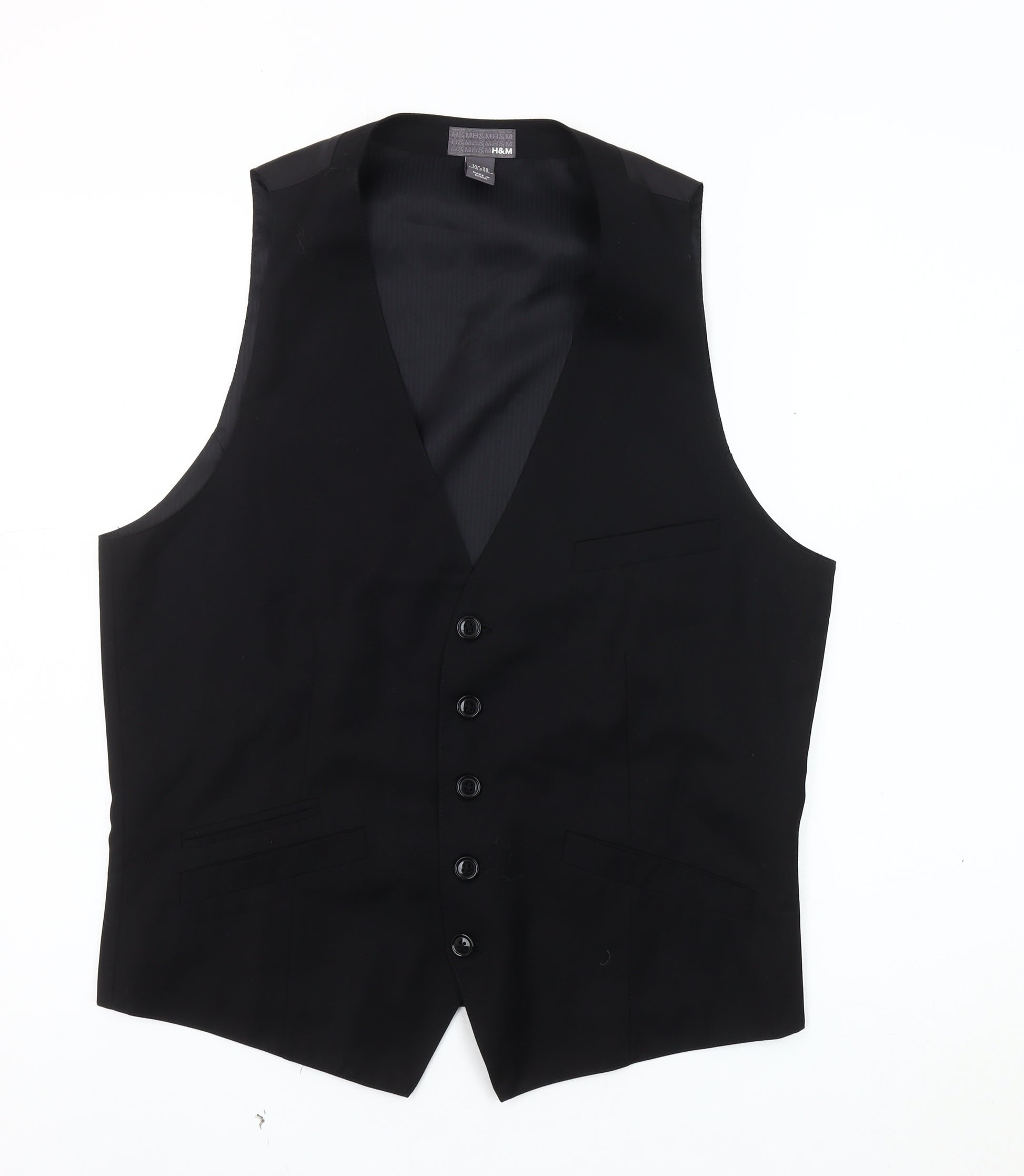 Elevate your formal wardrobe with this sleek H&M men's black suit waistcoat. Perfect for any formal occasion, this waistcoat offers a sophisticated touch to your outfit. Crafted from a blend of polyester, viscose, and elastane, it ensures comfort and durability. The elegant black colour adds timeless versatility, allowing it to pair seamlessly with a variety of outfits. Designed for men, this waistcoat in Size 50 presents a polished and classy look. It features inner pockets for convenience and is machine washable, making it easy to care for. Whether for a business meeting, a formal event, or a wedding, this waistcoat will enhance your ensemble with its classic waistcoat style. Experience comfort and elegance in one with this essential addition to your collection.