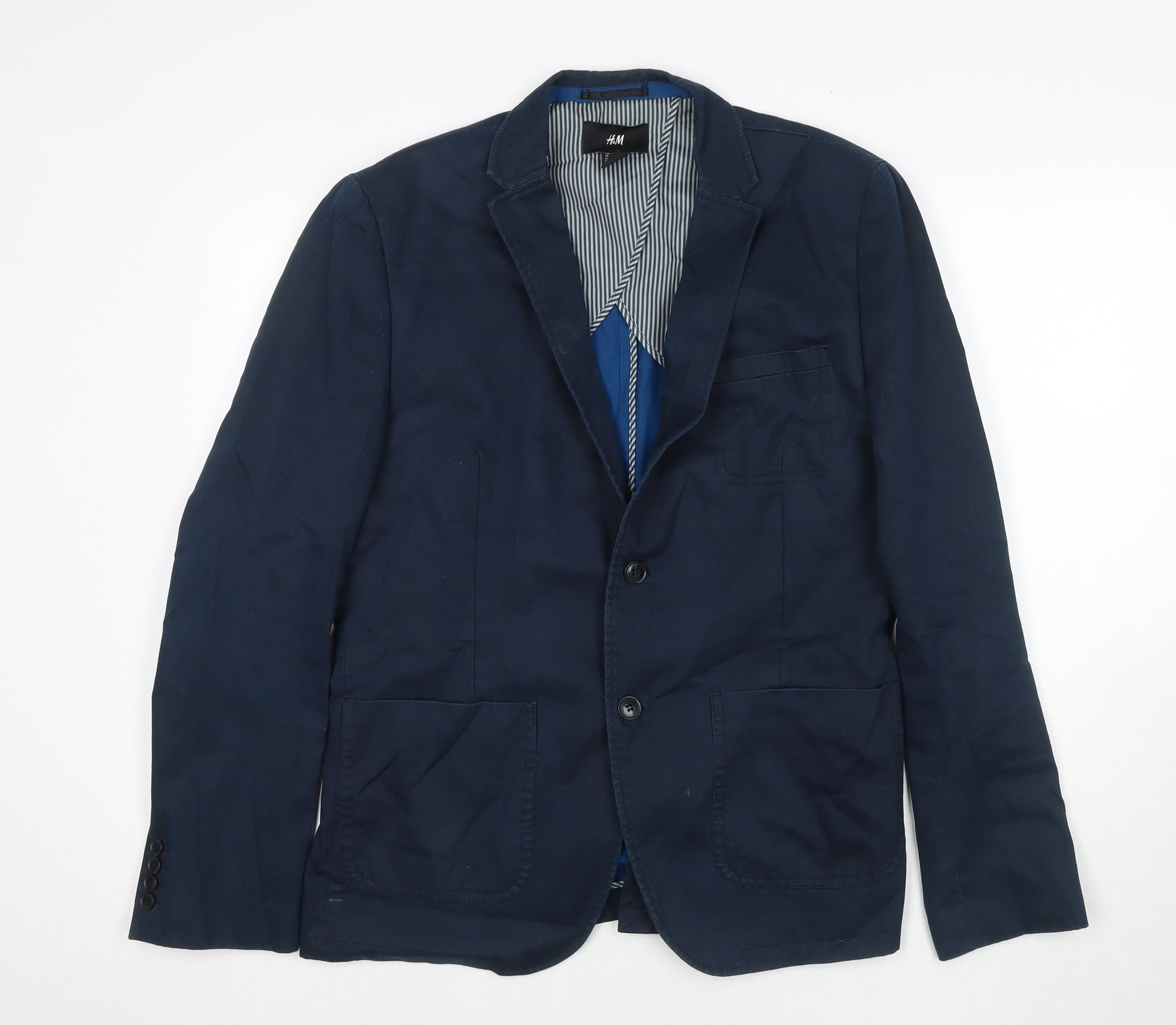 Mens Blue Cotton Jacket Suit Jacket Size 44 Regular