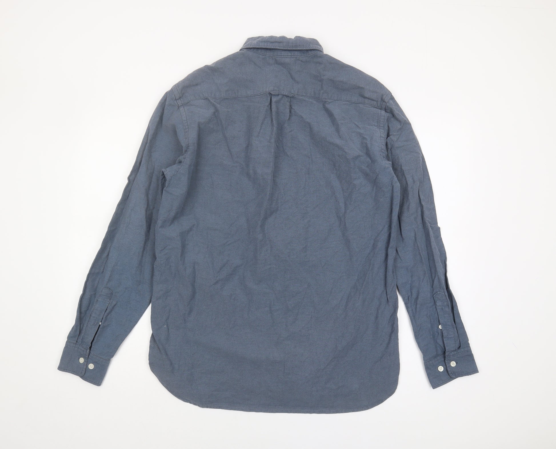 This H&M Men's Casual Shirt is perfect for those who appreciate comfort and style. Crafted from 100% cotton for a soft and lightweight feel, this shirt offers a classic fit with long sleeves and a solid blue colour that can easily be paired with any outfit. The button-up design, complemented by a button-down collar and regular fit, gives it a timeless appeal that suits various occasions, whether it’s a laid-back gathering or a casual work environment. Designed for machine washability, it promises ease of care while retaining its form and colour even after multiple washes. Though gently used, this shirt is in excellent condition, showing only some gentle wrinkles, which add to its relaxed charm. Complete your wardrobe with this versatile piece, offering a blend of style and comfort that is sure to impress.