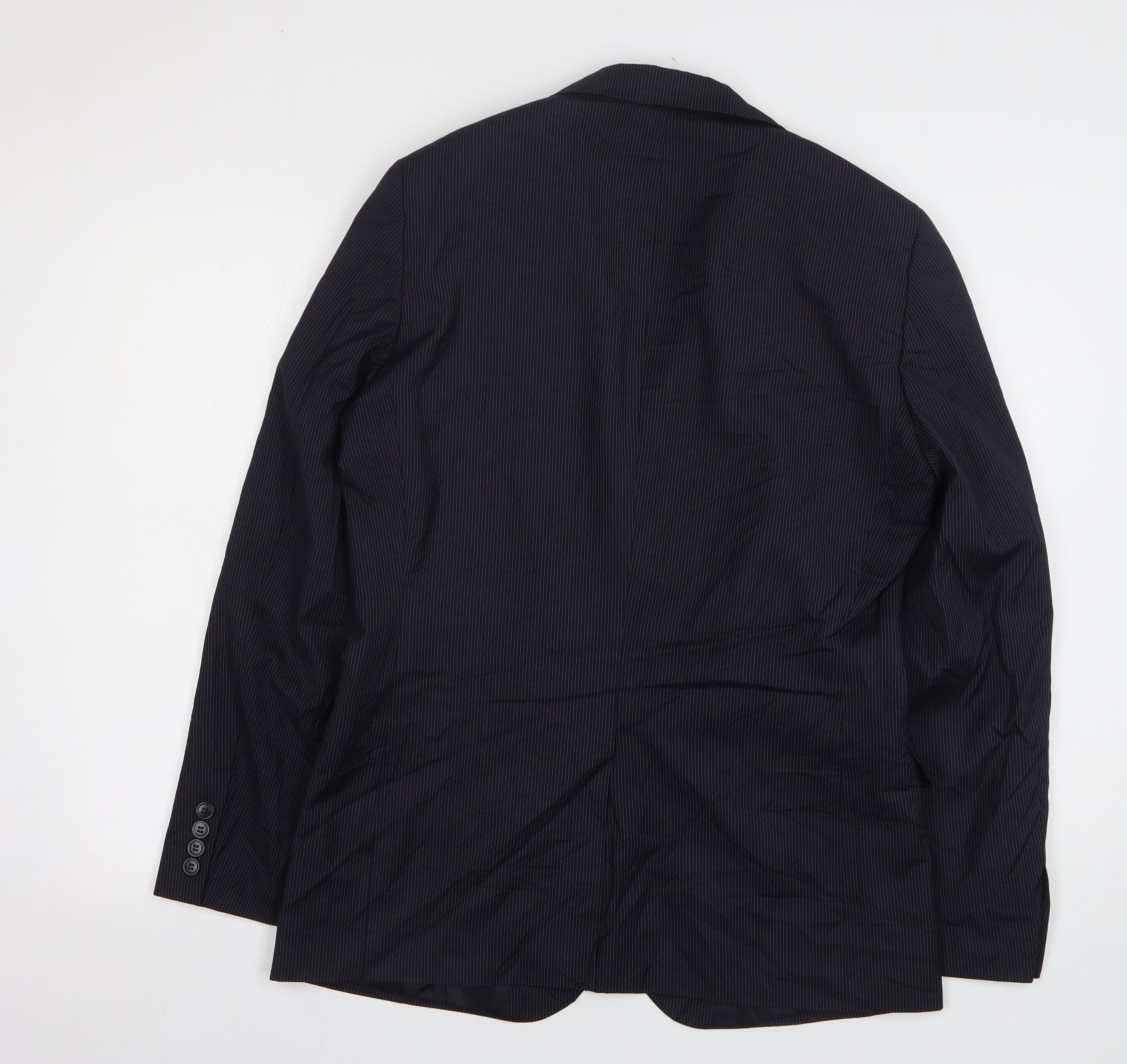 Mens Blue Striped Polyester Jacket Suit Jacket Size 40