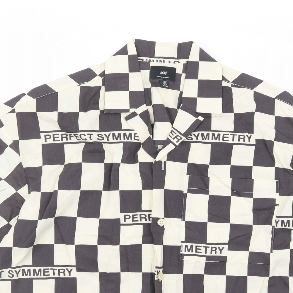 Mens Brown Check Cotton Button-Up Size S Collared Button - Oversized