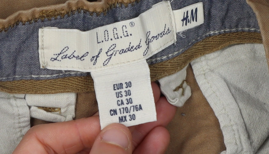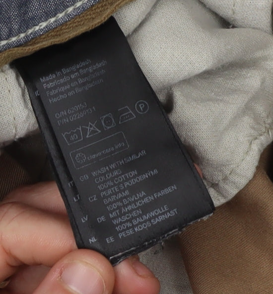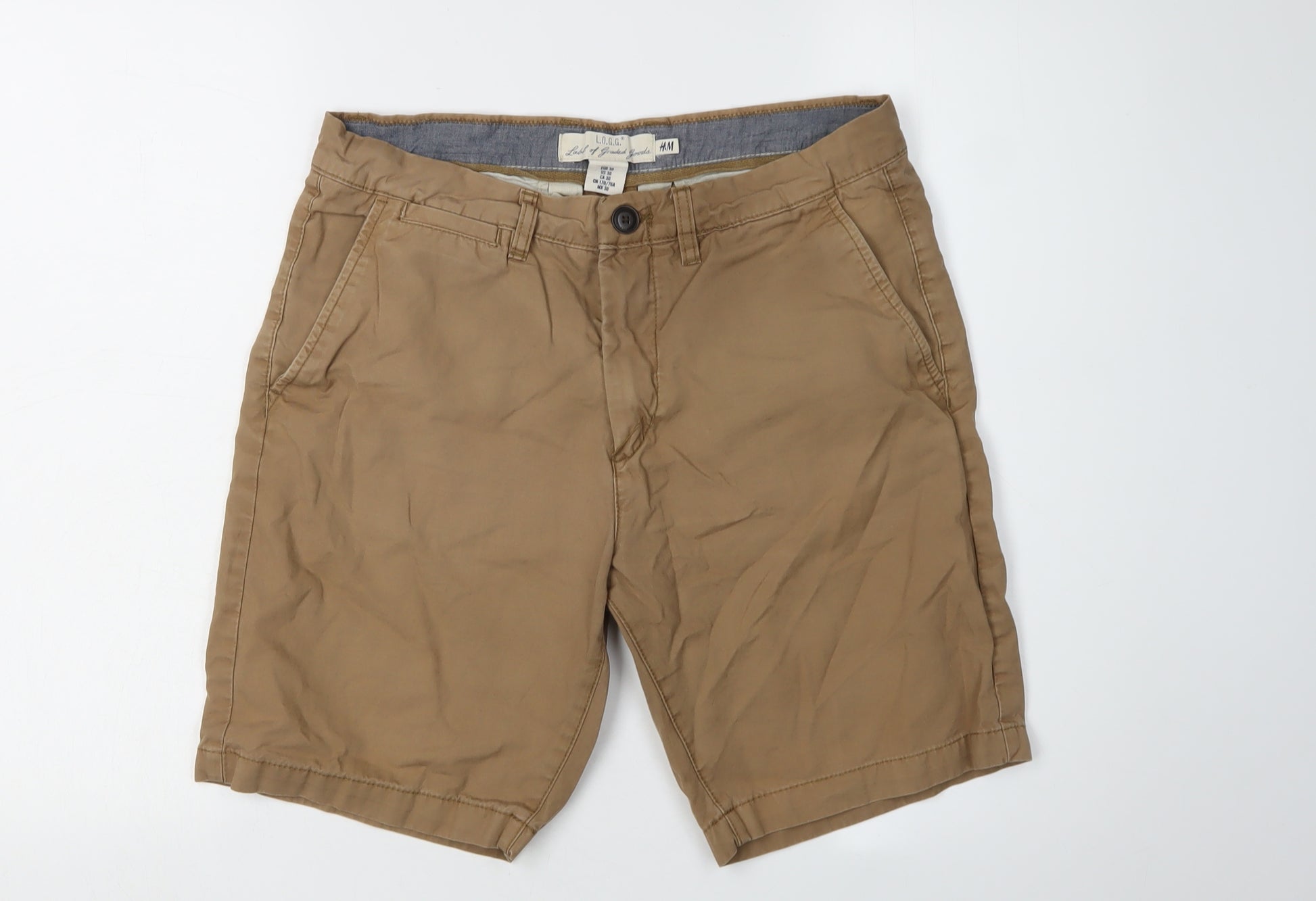 Step into comfort and style with these H&M men's brown chino shorts, perfect for casual outings and travel adventures. Crafted from 100% cotton fabric, these shorts offer a breathable and lightweight feel, making them ideal for warm weather wear in summer, spring, and autumn. The regular fit ensures comfort throughout the day, while the mid-rise design provides a modern look. Featuring a classic flat front with button and zip closure, these shorts are both practical and stylish. The belted design adds a touch of refinement, and the slash pockets provide functionality for carrying essentials. Whether you're strolling through the city or relaxing at the beach, these chino shorts are the versatile choice you need. Slightly wrinkled, they are machine washable for easy care, and despite the minor wrinkles, they remain in excellent condition. Make these stylish shorts your go-to piece for a laid-back yet smart look. Available in size M with a 30-inch waist, these brown shorts are a staple for any wardrobe.