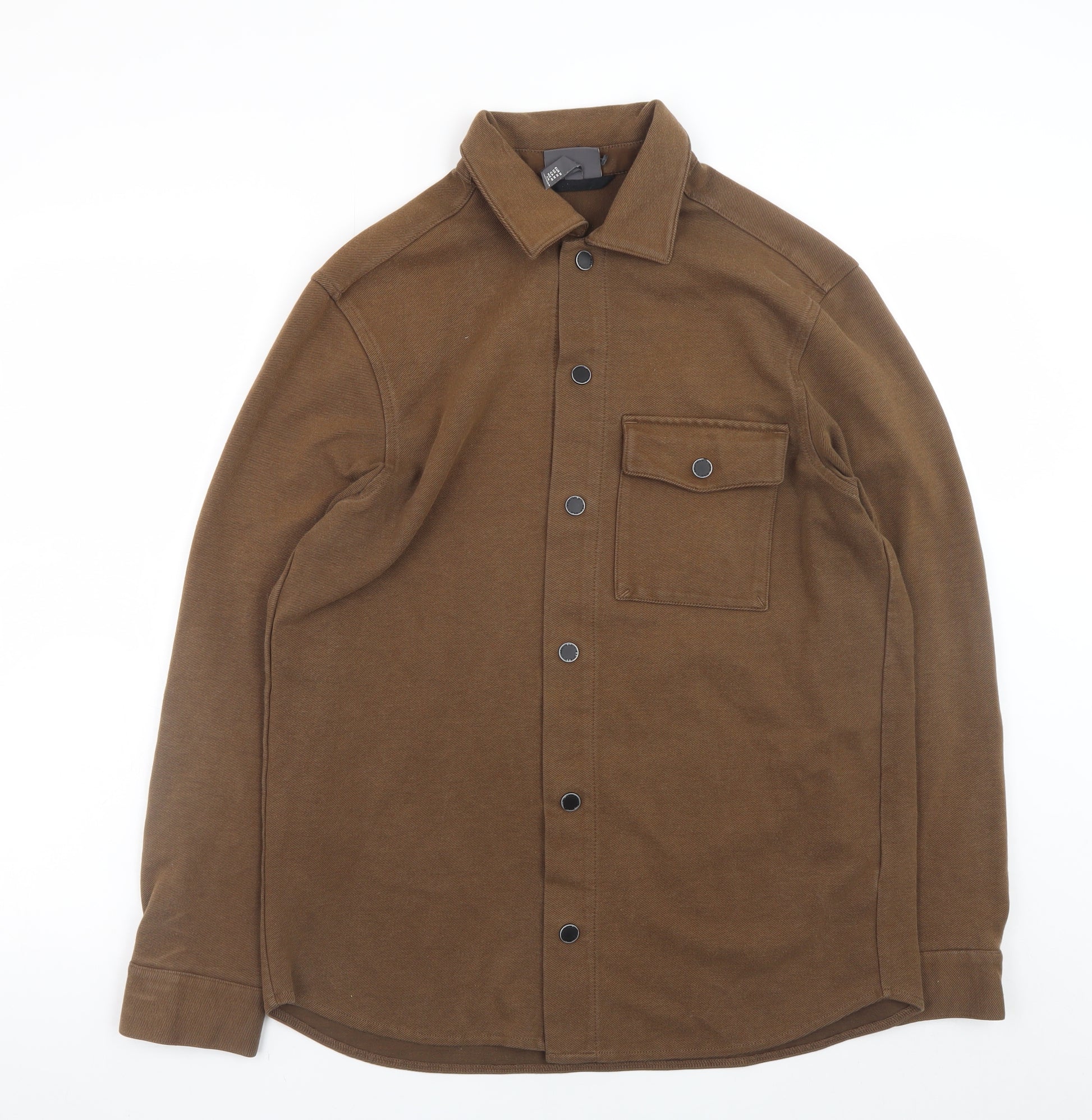 Men's Brown Regular Fit Button Jacket Size M Casual Twill