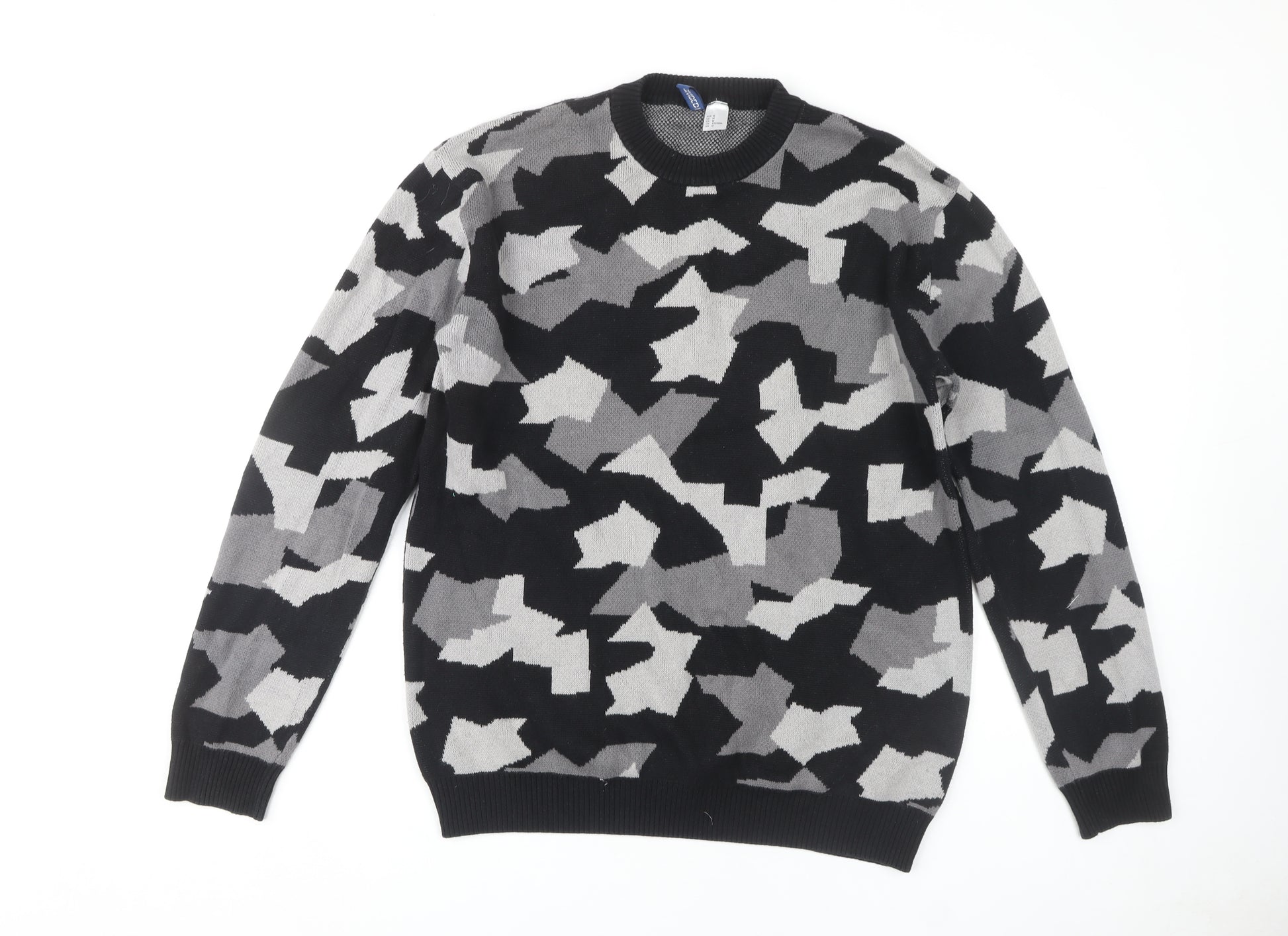 Elevate your casual wardrobe with this striking H&M Men's Pullover, designed to make a bold statement with its multicoloured camouflage pattern. Crafted from 100% cotton, this jumper is not only stylish but also ensures breathability and comfort, making it ideal for everyday wear. The regular fit and crew neck provide a classic silhouette that matches effortlessly with jeans or trousers, perfect for a relaxed outing or a casual day at work. The long sleeves offer extra warmth, making it a versatile choice for autumn, winter, and spring. With machine washable care, maintaining this jumper is as easy as wearing it. Whether you're meeting friends or heading to a casual event, this H&M pullover will keep you looking sharp and feeling comfortable. Don't miss the chance to add this unique piece to your collection and enjoy the perfect blend of fashion and functionality.