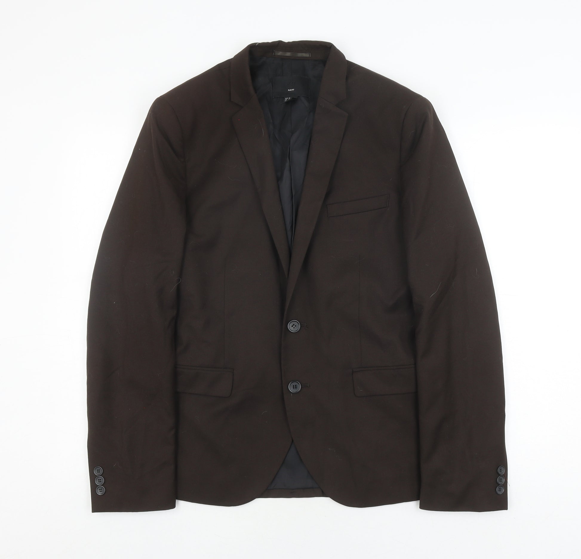 Elevate your wardrobe with this stylish H&M Men's Slim Fit Black Blazer in size L. Crafted from a refined blend of 60% polyester, 33% viscose, and 7% wool, this blazer offers a sophisticated yet comfortable wear. Its single-breasted design and two-button front add a touch of modern elegance, perfect for both formal and semi-formal occasions. The black colour ensures versatility, allowing it to pair seamlessly with various outfits. Designed with a notch lapel and single-vented back, this slim-fit blazer accentuates the silhouette, catering to those who appreciate contemporary style. The interior is lined with 100% polyester, ensuring a smooth and luxurious feel against the skin. With a regular jacket length and four-button cuffs, it provides a classic look while maintaining functional ease. Though it's in excellent condition, there's slight lint visible, a minor detail that doesn't detract from its charm. Ideal for business meetings, evening events, or casual outings, this blazer is versatile enough to match any wardrobe. Don't miss out on adding this essential piece to your collection at an attractive price.