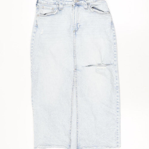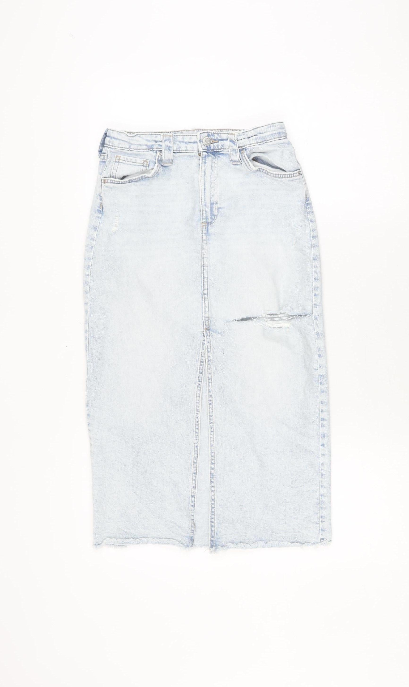 Elevate your everyday wardrobe with this fashionable H&M denim skirt, perfect for teens seeking a blend of style and comfort. This knee-length pencil skirt in versatile blue is crafted from premium denim, featuring a blend of 99% cotton and 1% elastane, ensuring a comfortable stretch that allows for flexible movement. The skirt's material and cut evoke effortless casual elegance, making it a go-to option for a chic yet laid-back look.With a design focused on practicality, this skirt includes convenient pockets for a touch of utility. The mid-rise style complements a variety of tops, making it easy to create multiple outfits. The subtle ripped accents add a trendy detail without overpowering the skirt's clean, modern aesthetic.Ideal for all seasons, this versatile blue skirt can transition seamlessly between different occasions—whether you're heading out for a casual day with friends or running errands around town. Easy to care for, it's machine washable, saving you time on maintenance without sacrificing its stylish appeal.If you're a teen style enthusiast who values comfort, flair, and ease, this H&M skirt is a must-have addition to your wardrobe. Its simple yet fashionable design promises to stay in trend, providing numerous styling opportunities. Grab this trendy piece now to refresh your outfit options effortlessly!