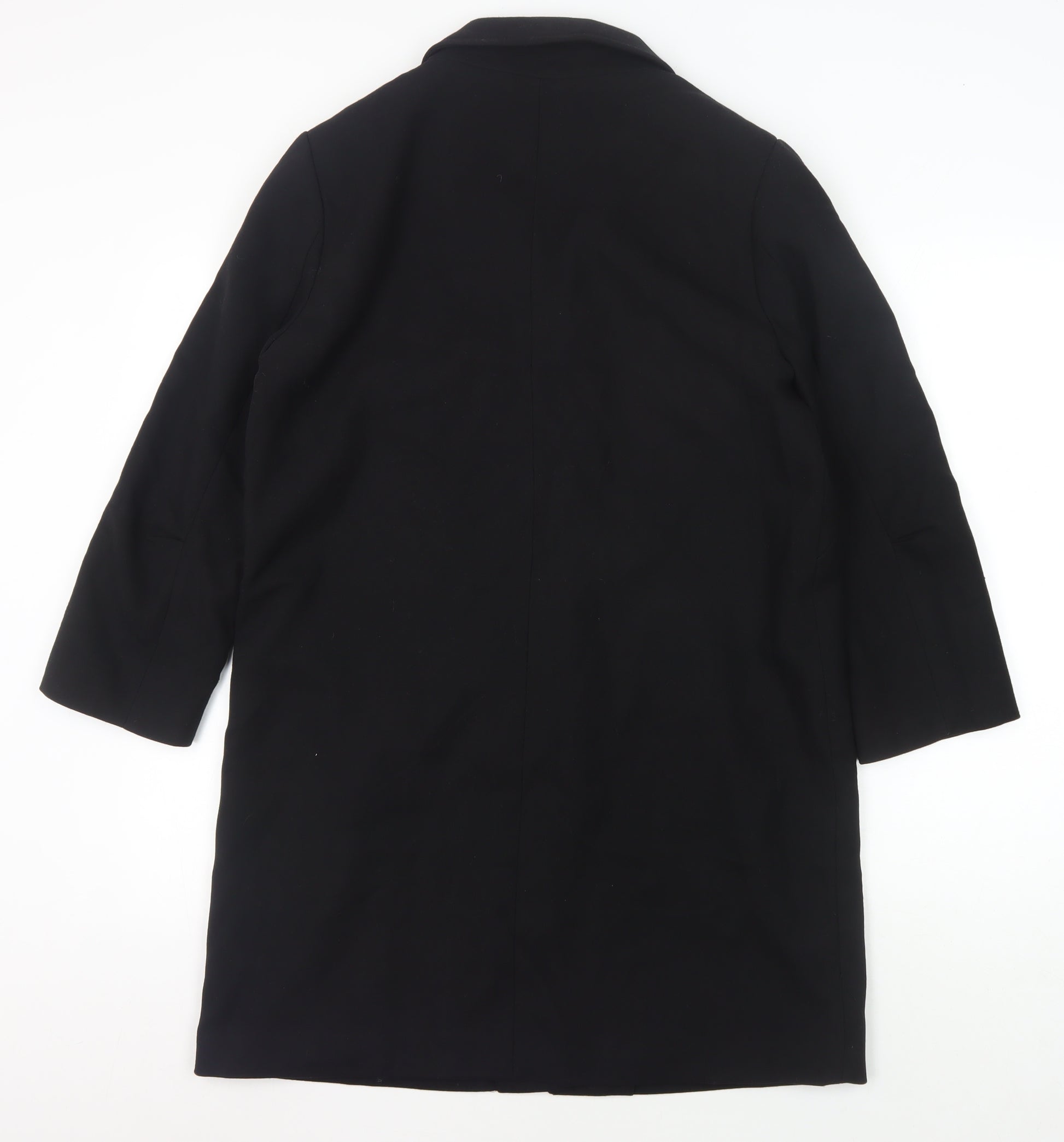 Elevate your outerwear collection with this H&M unisex black overcoat, perfect for both casual and formal outings. Designed to provide warmth and style, this regular fit coat is tailored for an elegant silhouette. Crafted primarily from polyester with a touch of viscose and elastane, it promises comfort and slight stretch to suit your body shape beautifully. This overcoat, featuring a sleek button closure and a point collar, ensures you stay snug even during the colder months of autumn and winter. The polyester lining offers additional warmth, making it an ideal choice for transitioning through seasons seamlessly. Its minimalist design, devoid of any pronounced patterns, caters to a timeless aesthetic that will effortlessly blend with any wardrobe. Suitable for numerous occasions, including casual outings, this versatile coat comes in a long length, providing both coverage and style. Its machine washable nature ensures easy maintenance, keeping it ready to serve style every day. With no visible defects or damage, this excellently condition piece demonstrates fine attention to quality and detail. Whether you're off to work or a relaxed day out, take advantage of its classic design to refine your winter ensemble.