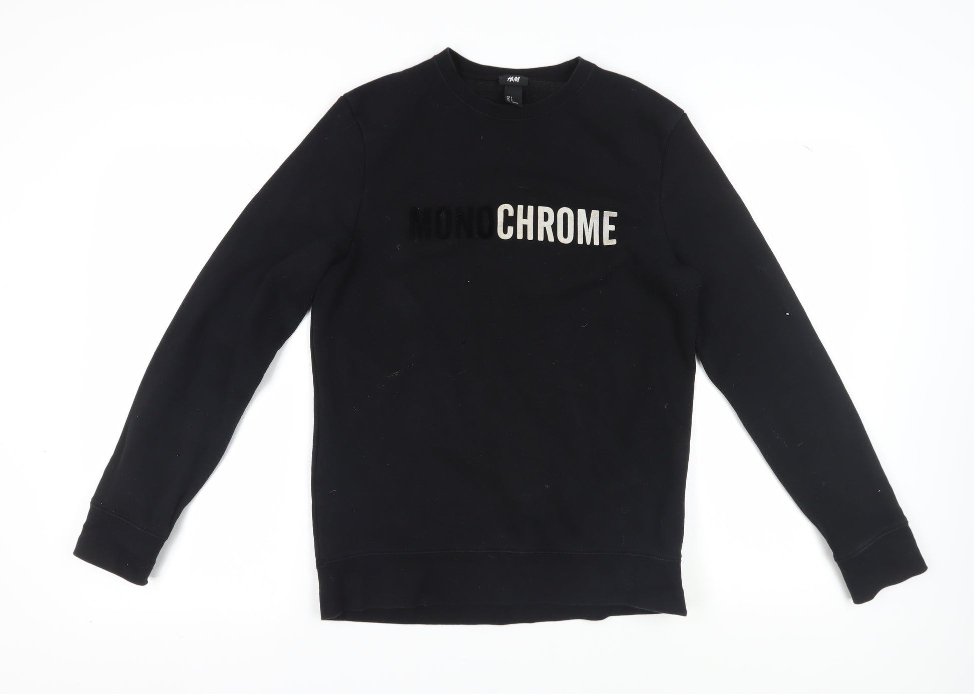 Experience elevated style with this H&M Unisex Adults Black Graphic Print Sweatshirt, tailored to add a touch of classic chic to your wardrobe. Crafted from a blend of cotton and polyester, this pullover promises the ideal balance of comfort and durability. The fleece fabric type ensures warmth, making it an essential pick for cooler months. Its regular fit paired with a crew neckline encapsulates a timeless design, suitable for casual outings or a relaxed day at home.Featuring a striking 'Monochrome' logo accent on a rich black base, this sweatshirt merges simplicity with a flair of modern graphic detailing. Its long sleeves are tailored to offer a snug fit, making it an autumn and winter favourite. With its ability to complement various looks, this piece stands as a versatile wardrobe staple.The easy-care machine washable feature allows for hassle-free maintenance, perfect for a fast-paced lifestyle. Whether individually styled or layered, this sweatshirt is designed to offer endless styling possibilities. Embrace functionality and style with this must-have addition, ideal for anyone seeking comfort without compromising on fashion.