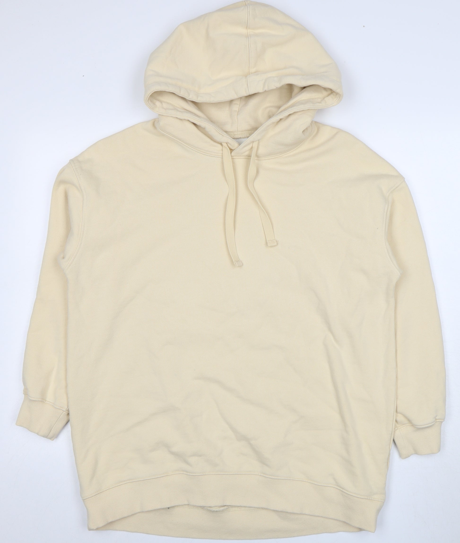 Embrace comfort and style with this H&M beige pullover hoodie, perfect for casual outings and a relaxed look. This hoodie, designed for women, features a timeless beige colour, making it versatile for any wardrobe. The pullover style ensures easy wearability, while the hood provides additional warmth for those chilly days. Made from 100% cotton, it offers breathability and softness, ensuring maximum comfort throughout the day. With a drawstring closure, you can adjust the hood to your liking. Its long sleeves add to its practicality, making it ideal for layering during cooler seasons. Whether lounging at home, running errands, or meeting friends, this hoodie will keep you stylishly comfortable. Available in a size S, it fits a regular UK size chart. This wardrobe essential is machine washable, adding convenience to its many attributes. Don’t miss out on this cozy addition to your collection.