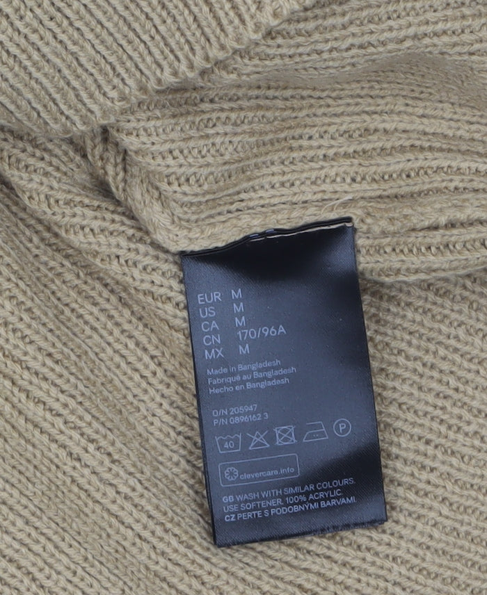 Stay cosy and stylish this season with this beige roll neck jumper from H&M’s Divided collection. Crafted from soft, 100% acrylic knit fabric, this pullover offers a comfortable, lightweight feel that’s perfect for layering. The relaxed fit pairs effortlessly with jeans or skirts, making it a versatile addition to your wardrobe. Featuring a roll neck design for added warmth and modern appeal, it’s the perfect piece for chilly autumn and winter days. The tightly knitted texture adds structure and durability while maintaining flexibility for everyday comfort. Designed with long raglan sleeves for a laid-back yet flattering silhouette, this jumper combines practicality with simple, understated style. Its neutral beige colour complements a variety of outfits and accessories, giving you endless styling options for casual outings, cosy evenings, or weekend errands. Easy to care for and machine washable, this jumper is both convenient and fashionable. Ideal for those who appreciate timeless style and effortless wearability, this H&M knit is a wardrobe essential that blends function, softness, and minimalist design. Excellent pre-owned condition with no visible signs of wear ensures it’s ready to be enjoyed straight away. A perfect choice for anyone looking for a quality everyday pullover that transitions smoothly from day to night. Update your seasonal wardrobe with ease and comfort with this chic, relaxed-fit knitwear piece — a staple that will never go out of style.