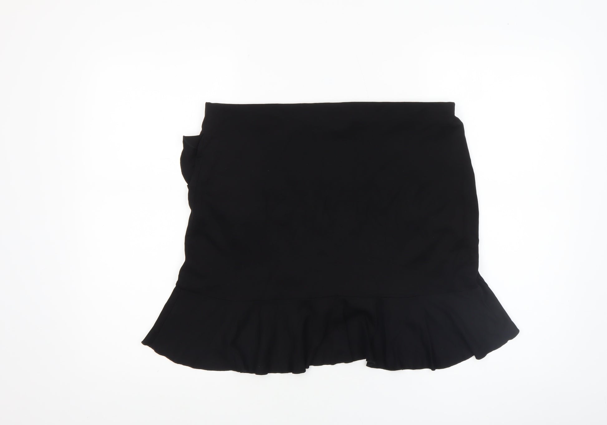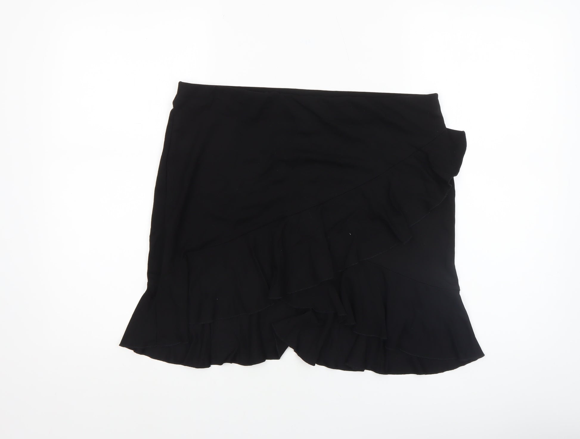 Women Black Wrap Ruffle Short Skirt Size L Viscose