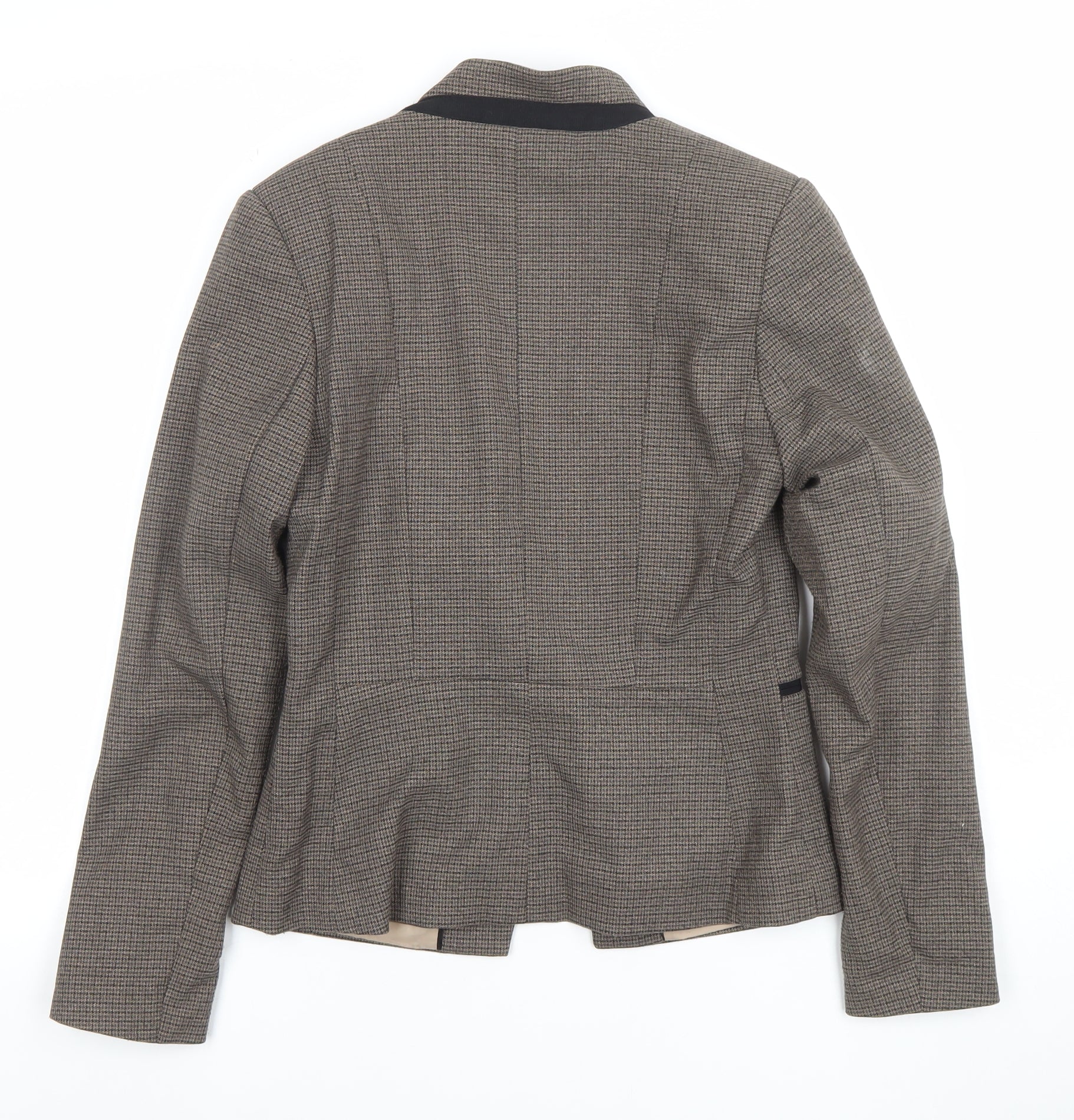 Women Brown Houndstooth Slim Fit Lined Blazer Size 8