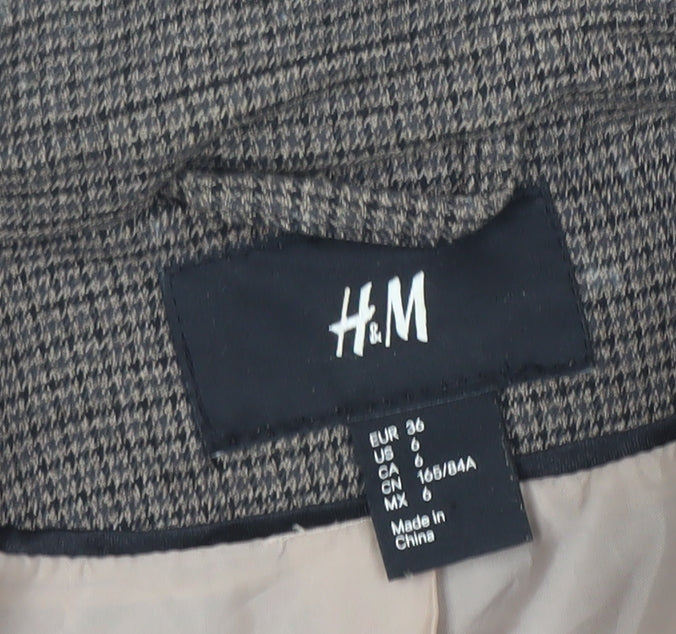Add a touch of timeless sophistication to your wardrobe with this H&M Women’s Houndstooth Blazer in sleek brown tones. Designed for the modern woman, this tailored piece combines classic style with comfort, perfect for professional settings and smart-casual occasions alike. The slim fit silhouette creates a flattering shape, while the woven houndstooth pattern adds texture and an undeniably chic appeal. Crafted from a durable yet soft blend of polyester, viscose, and elastane, it offers slight stretch for ease of movement and a comfortable fit throughout the day. The jacket features long sleeves, a modern single-breasted open front, and sleek black detailing on the pockets for a refined touch. Fully lined in smooth 100% polyester fabric, it ensures a premium tailored finish. This blazer pairs effortlessly with matching trousers, skirts, or even jeans, making it a versatile year-round staple for business meetings, workwear, or polished casual looks. The neutral brown palette makes it suitable for autumn and winter styling, coordinating easily with other wardrobe pieces. In excellent pre-owned condition, this garment shows minimal signs of wear and has been well cared for with no marks or defects. Designed for women who appreciate high street sophistication with an affordable edge, this H&M blazer embodies quality tailoring without compromise. Whether you’re dressing for a corporate day or a dinner engagement, it’s a go-to option that balances elegance and practicality. Machine washable for everyday convenience, this blazer is ready to complement your wardrobe with effortless poise.