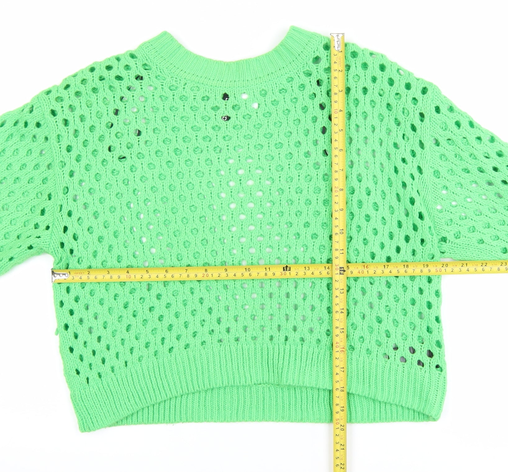 Women Green Open-Knit Acrylic Pullover Jumper Size 12