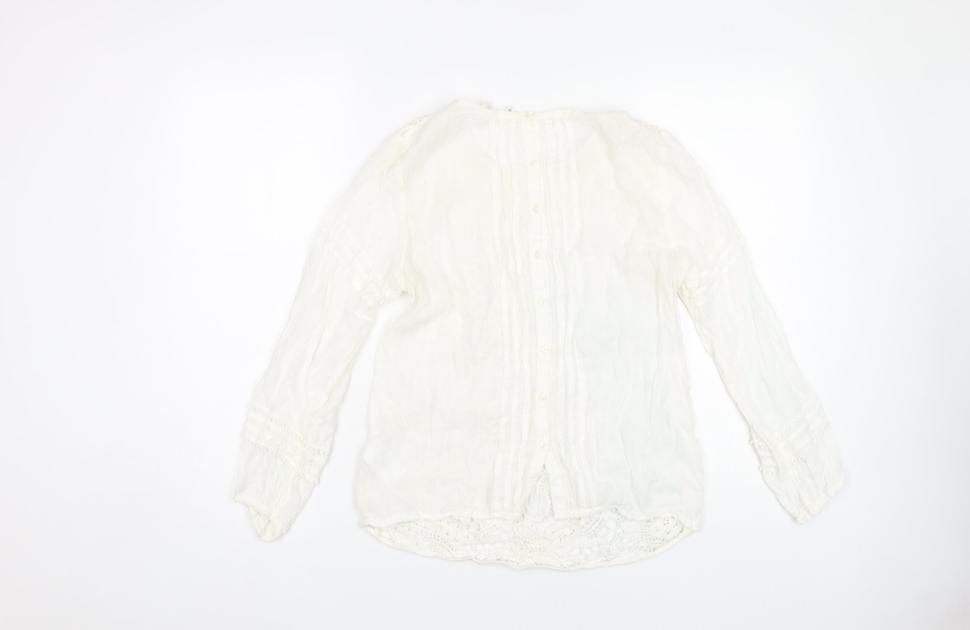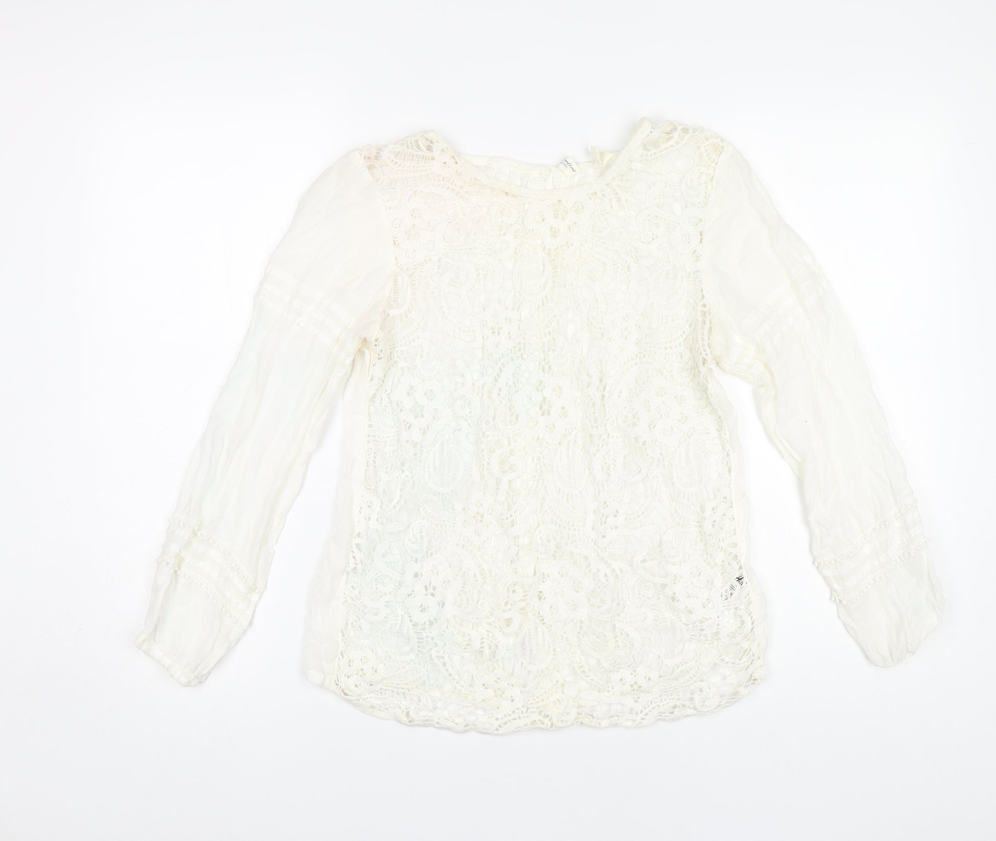 Embrace elegance with this exquisite ivory long sleeve blouse from H&M, perfect for bringing a touch of sophistication to your casual wardrobe. Crafted for women, this blouse is designed with a delicate lace fabric, combining softness with lightweight comfort, making it ideal for Spring and Summer outings. The regular fit and round neckline contribute to a timeless silhouette, while the ivory colour adds a versatile touch of class. Featuring a buttoned accent and made primarily from cotton and modal, this blouse guarantees breathability and style, with the practicality of machine washable care instructions. Whether worn to a laid-back brunch or a casual day out, its solid pattern ensures a chic, understated look. Add this essential piece to your collection for a refined, effortless appeal.