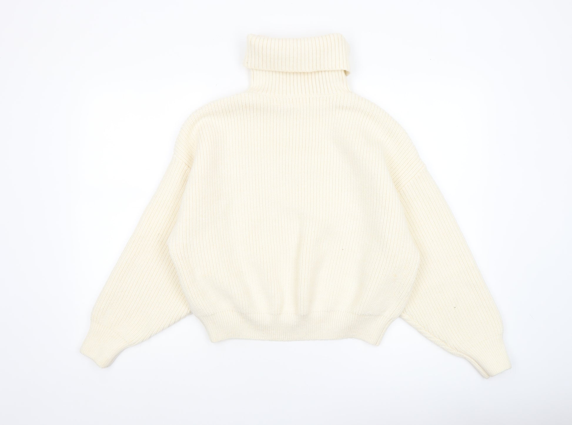 Women Ivory Roll Neck Chunky-Knit Pullover Jumper M